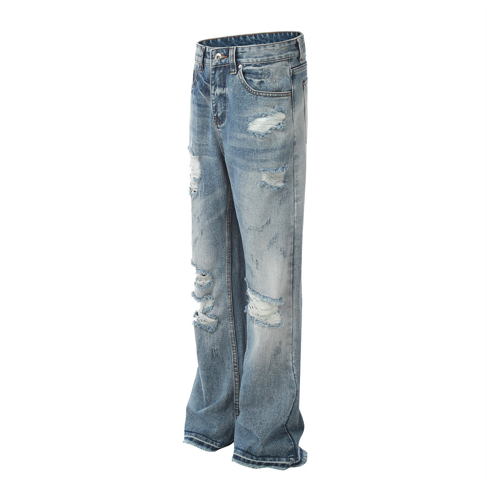 Heavy Industry Washing Hole Denim Bootcut Pants Male