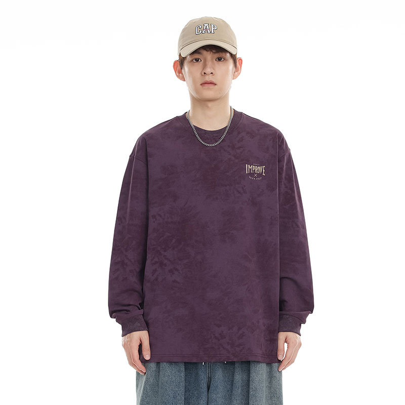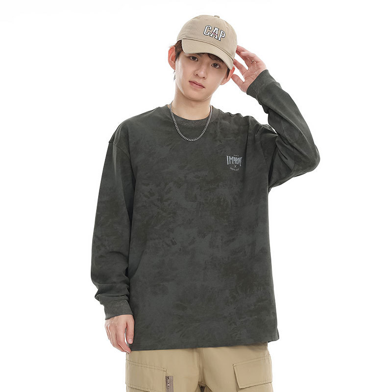 Heavy Long-sleeved T-shirt Retro Loose Tie-dye Printed Bottoming Shirt