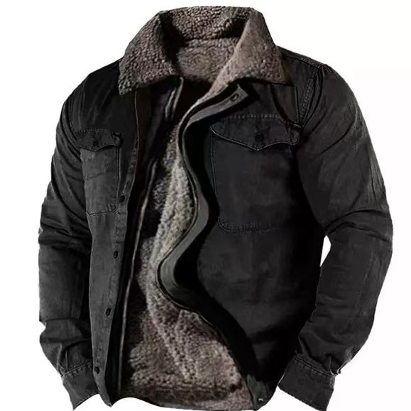 Heavy Side Seam Side Casual Zipper Loose Grey Brown Youth Cotton Jacket