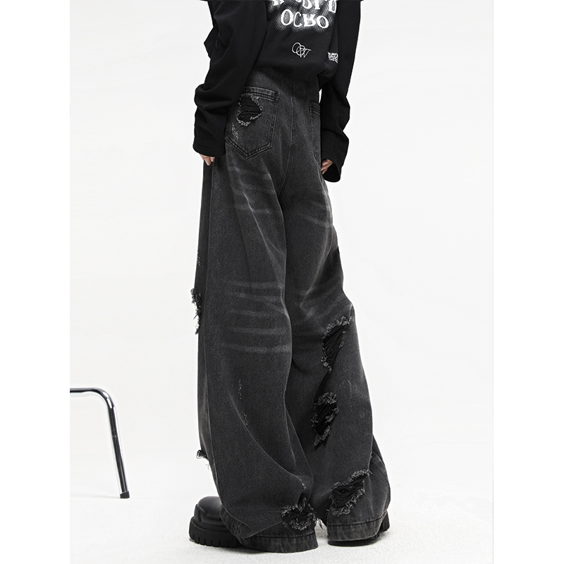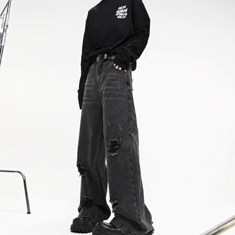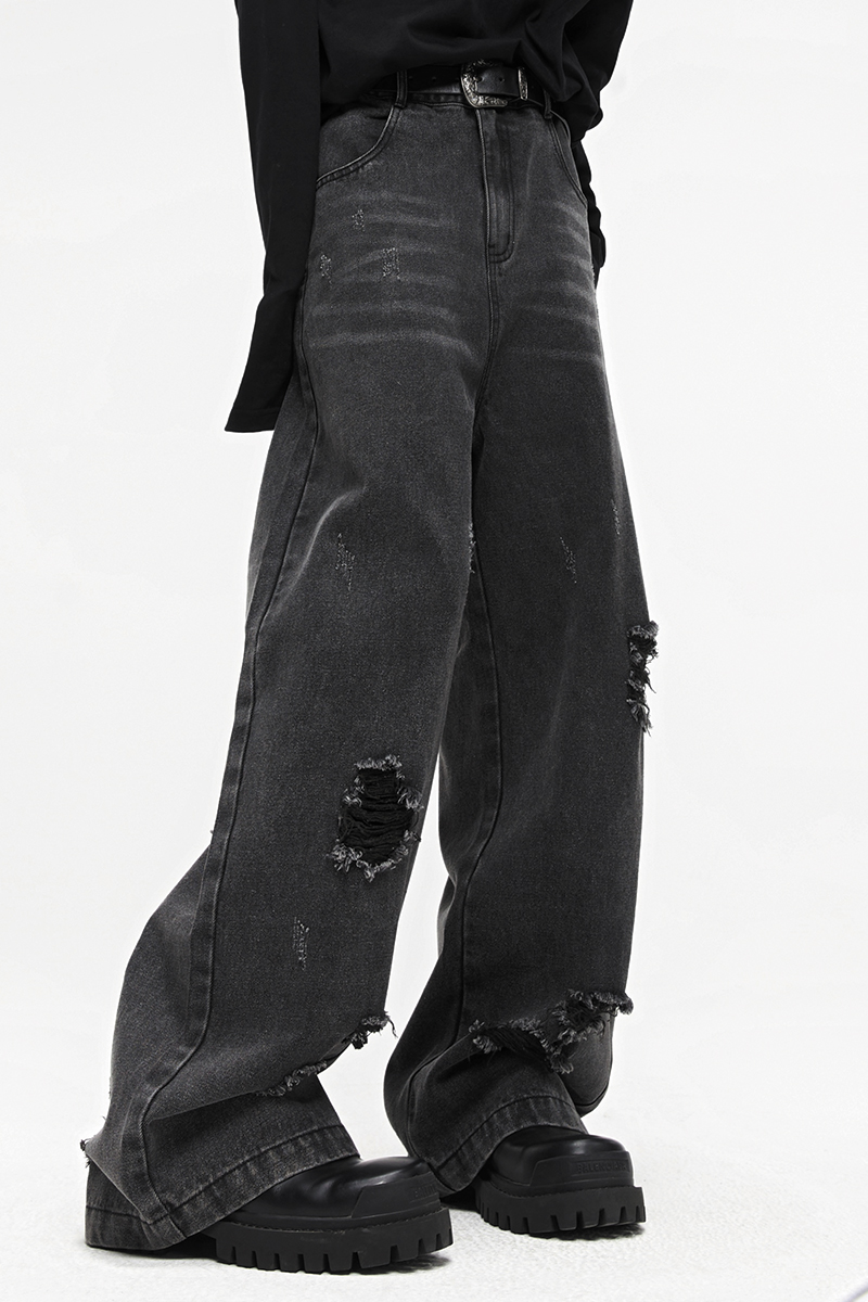 Heavy Washing Destroys Wide-leg Jeans