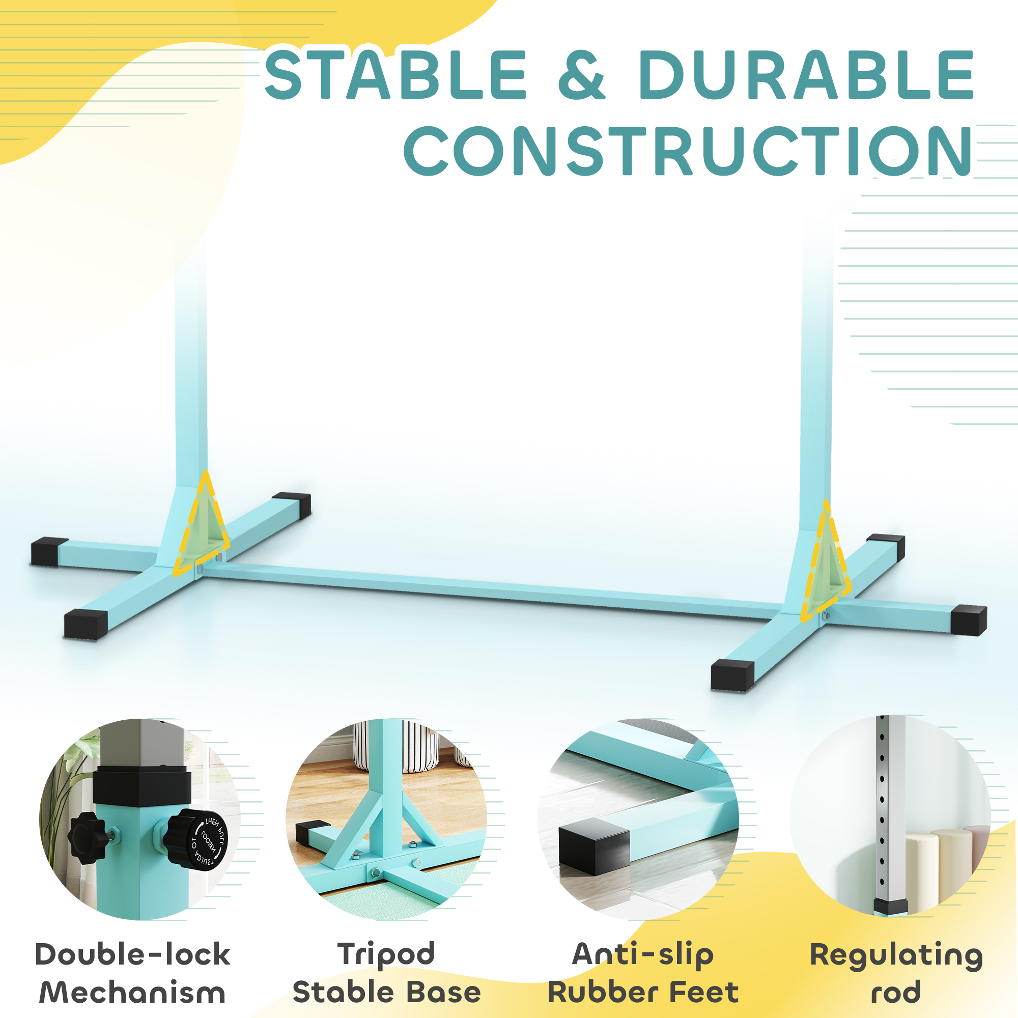 Gymnastics at home? Absolutely – with this kids gymnastics bar! Designed to grow with them, the height adjusts across 13 levels from 92–150cm, great for all ages and abilities. A strong steel frame and T-shaped base keep it stable through every flip and spin. With its fun light blue colour, it's a stylish way to boost balance, strength and coordination – right at home!