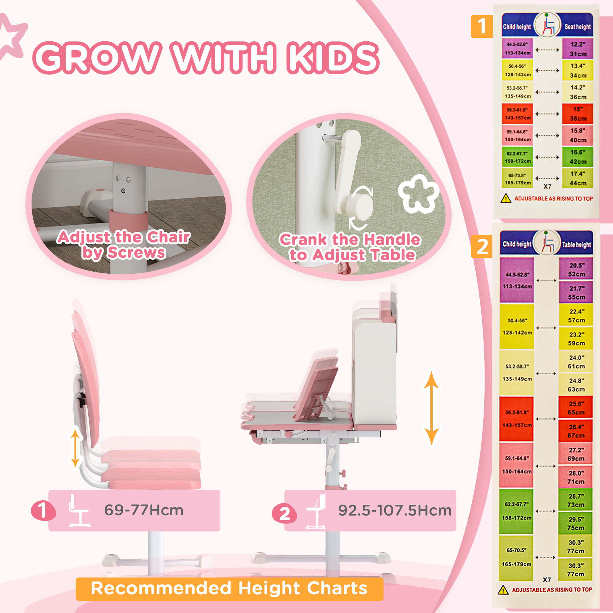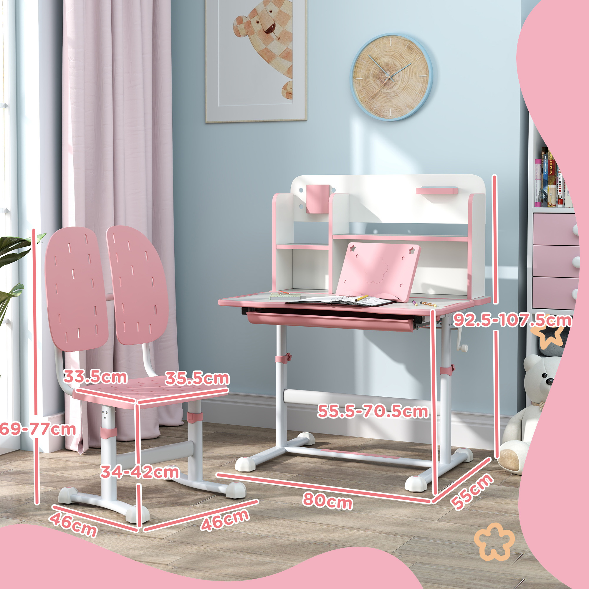 A dedicated space for little ones, this kids desk and chair set is great for studying, projects or just general play for ages 3-12 years. You can adjust the table and chair to their height, while the tiltable tabletop encourages good posture during long periods of sitting. With bookshelves, a pull-out drawer and a reading rack, everything stays organised, promoting productive learning and clutter-free playtime. It's their own spot to learn, grow and develop independently.