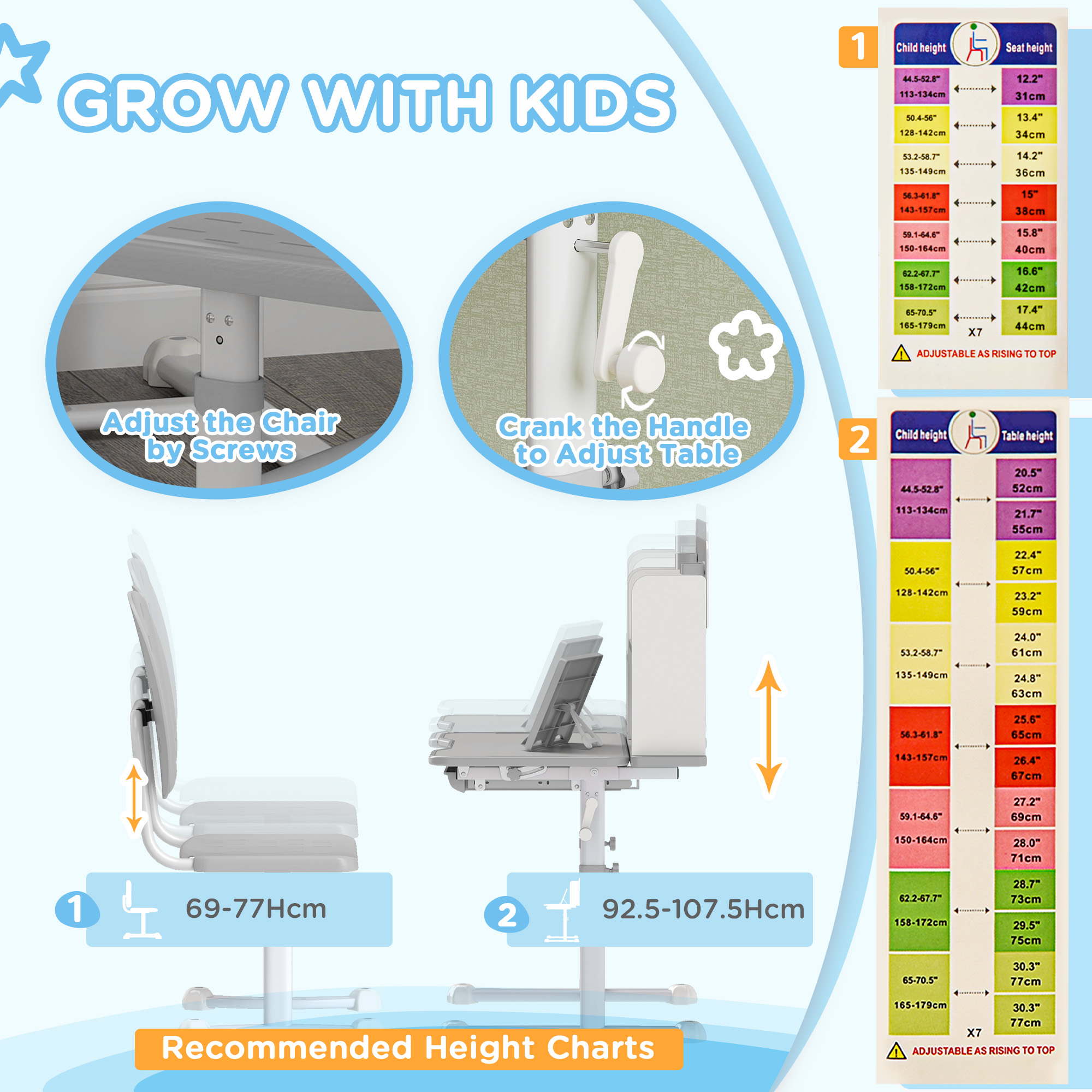 A dedicated space for little ones, this kids desk and chair set is great for studying, projects or just general play for ages 3-12 years. You can adjust the table and chair to their height, while the tiltable tabletop encourages good posture during long periods of sitting. With bookshelves, a pull-out drawer and a reading rack, everything stays organised, promoting productive learning and clutter-free playtime. It's their own spot to learn, grow and develop independently.