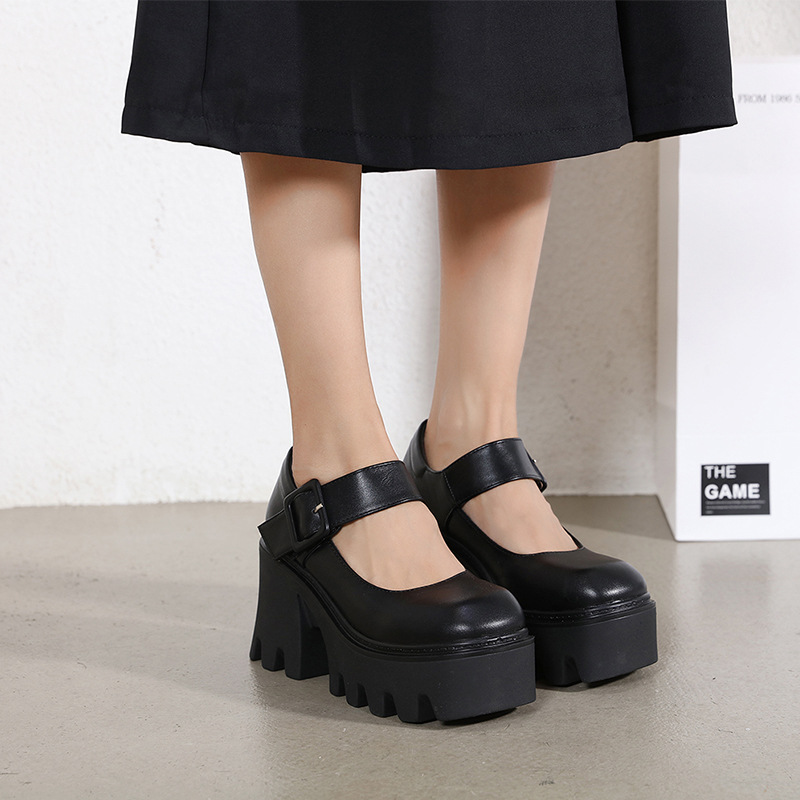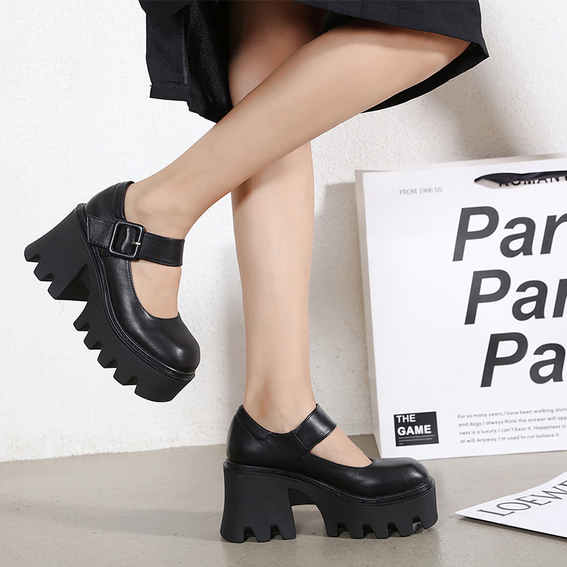Popular elements: shallow mouth, chunky heel, Buckle, waterproof platform, belt buckle