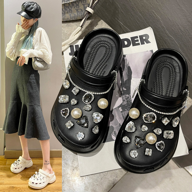 Popular elements: Hollow rhinestones, beads, chains, wedge heels, sponge cake heels, thick heels, waterproof platform, metal decoration
