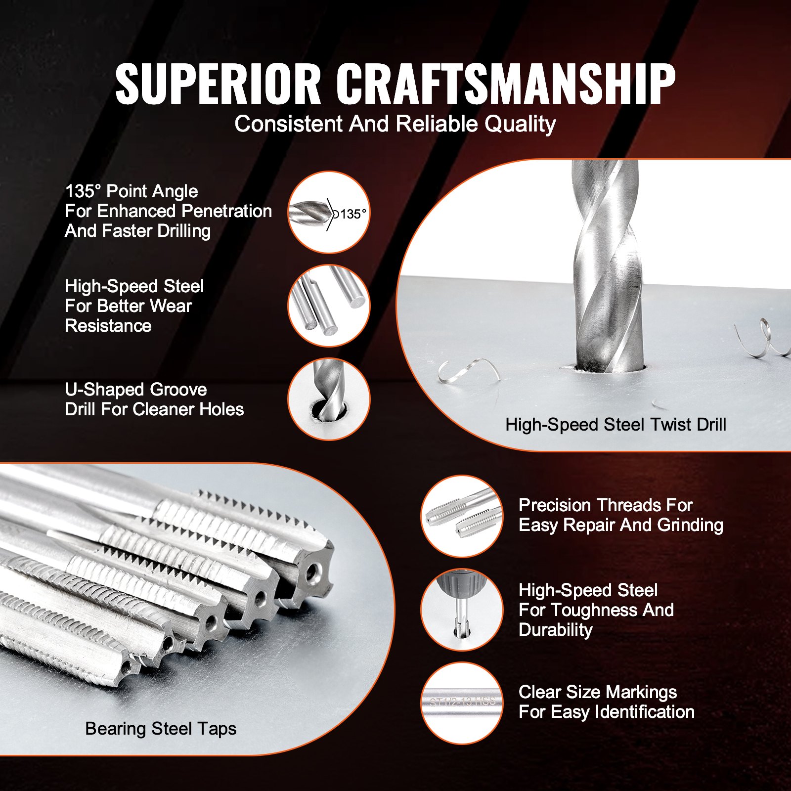 Built to Last: This helicoil thread repair kit features drill bits and taps made from premium steel, heat-treated to HRC 55-62 for superior durability. The kit includes more metal thread inserts, each crafted from high-strength 304 stainless steel, ensuring longevity and reliability for all your repair needs.