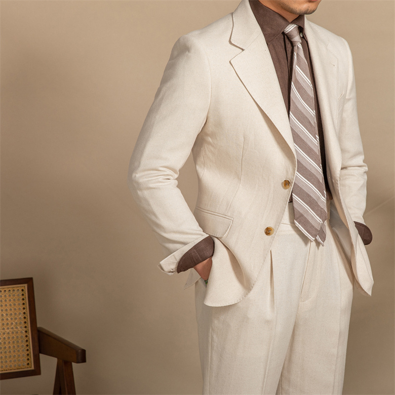 Hemp Texture Half Lined Slim Fit Men's Suit