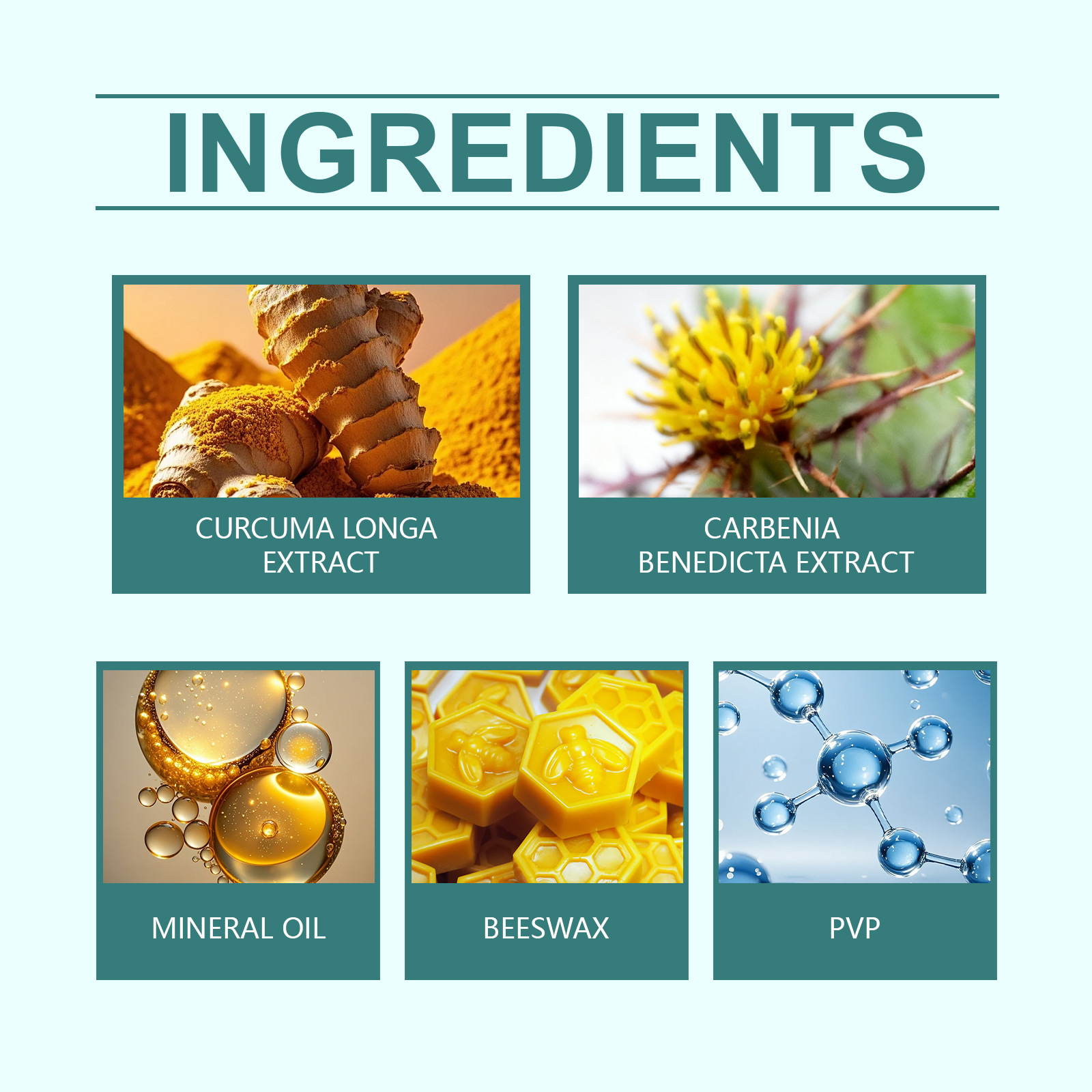 Active ingredients: Turmeric Extracts. Blessing thistle extract