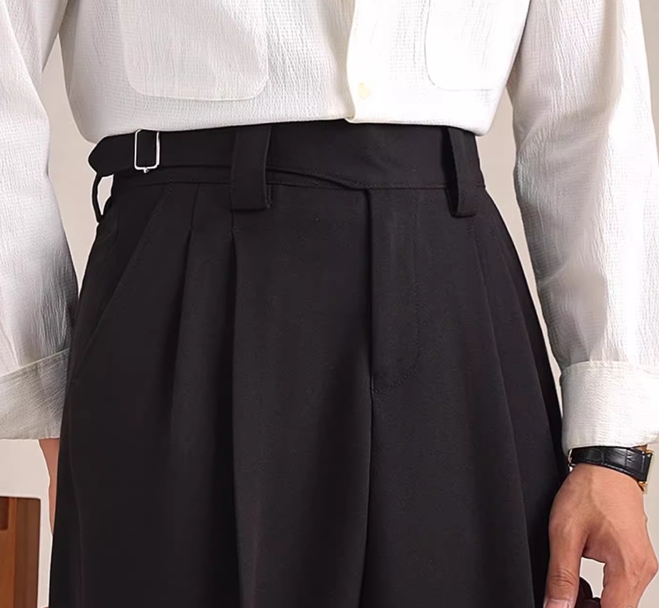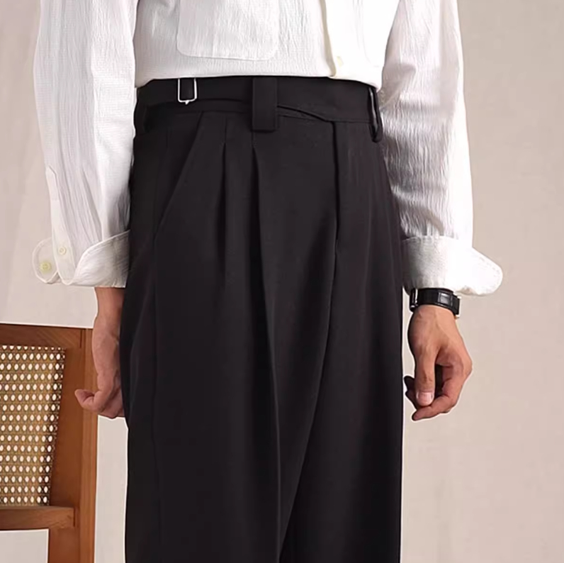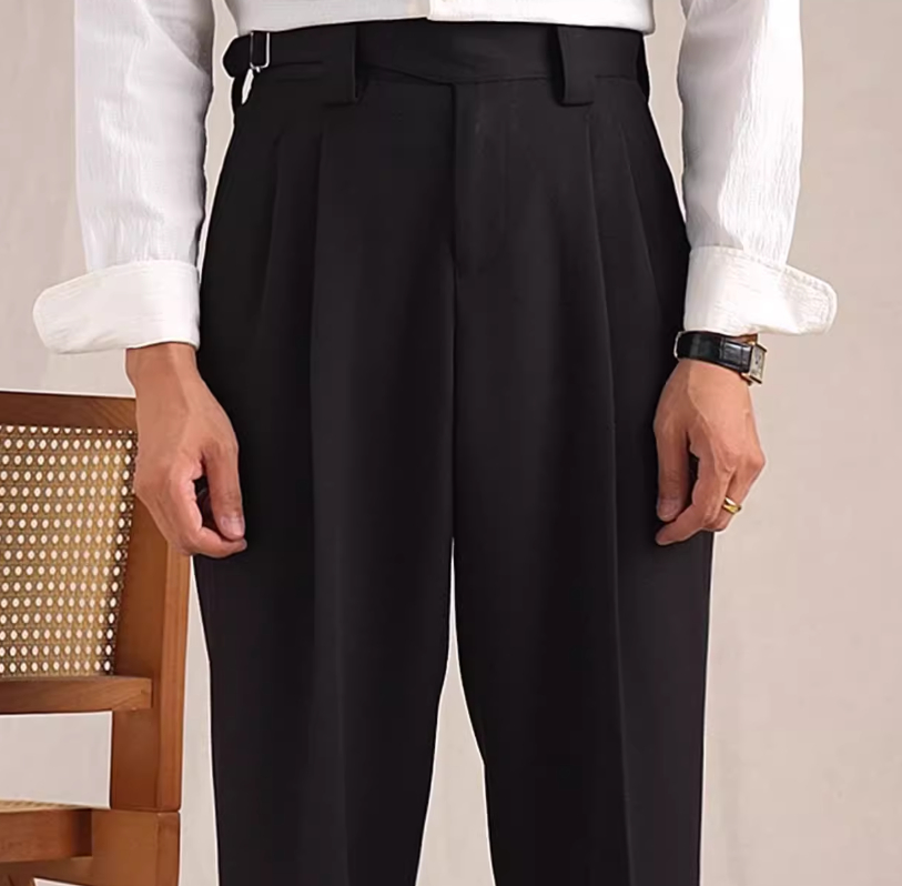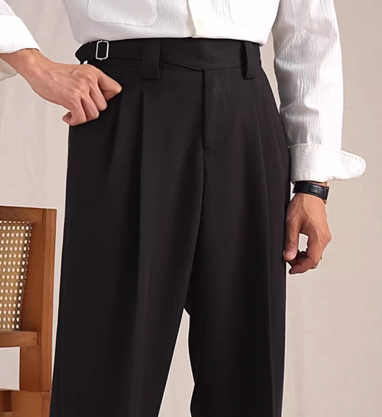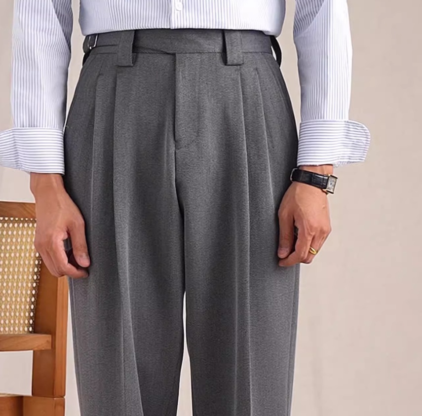 Herringbone Pattern Auger Casual Suit Pants Men's Loose Straight High-grade Non-ironing Double Pleated Trousers