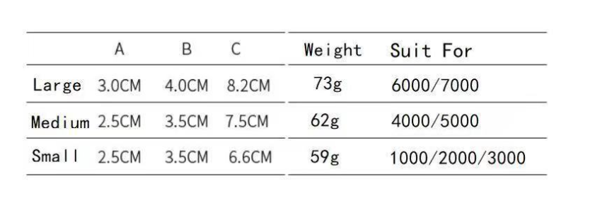 Specifications: small, medium, and large