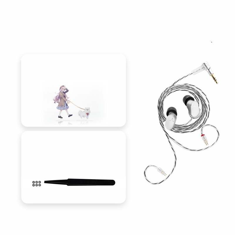 Headphones *1, standard cables *1, postcards *1, storage bags *1, cable ties *1, silicone earphone sets, one pair for each size.