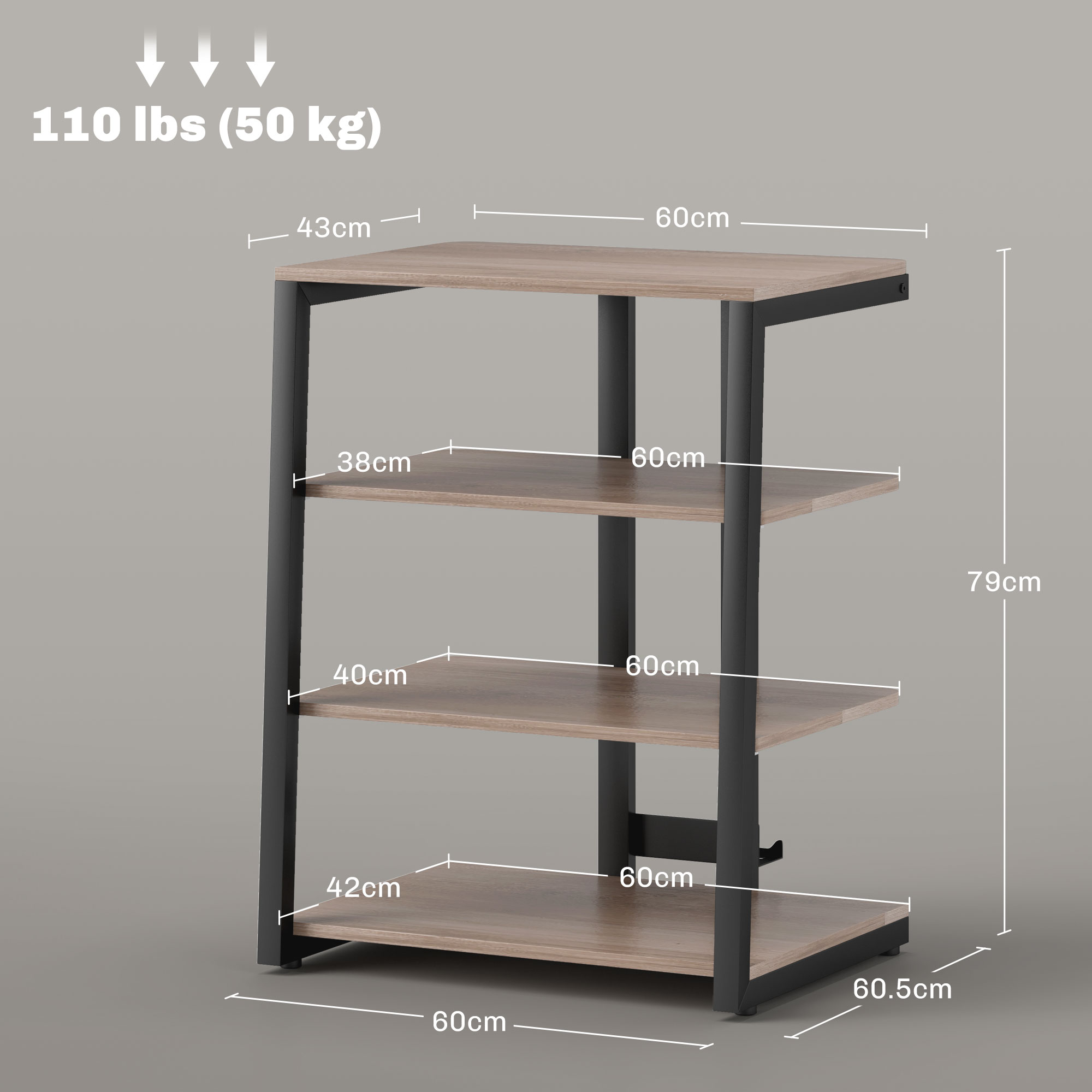 Simple style in a compact design - this HiFi stand. Four shelves offer enough room for keeping media equipment in a place; both the middle shelves are adjustable so you can set them to a suitable position. The steel frame of this router shelf ensures a strong core which will support properly, finished off with adjustable feet for balance and a handy power board rack.