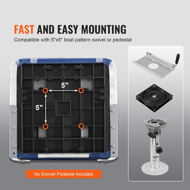 High Back Boat Seat, Folding Boat Chair With Thickened Sponge Padding And Hinge, Fold-Down Boat Captain Chairs For Fishing Boat, Sightseeing Boat, Speedboat, Canoe, 2-Pack