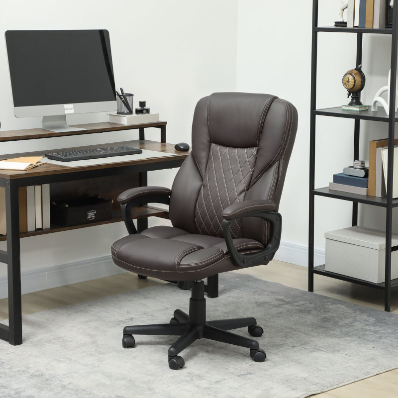 High Back Ergonomic Office Chair, PU Leather Executive Desk Chair With Adjustable Height And Swivel Wheels, Brown