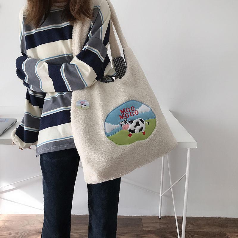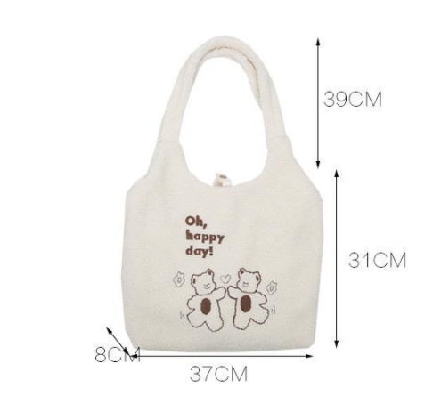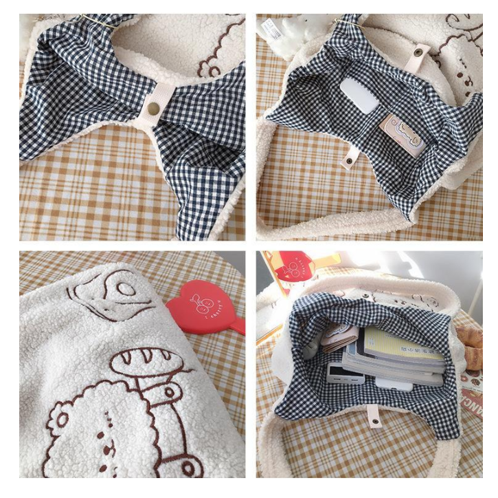 Color: little bear toast (plaid inside), two little bears (white inside), large capacity of orange imitation lamb, large capacity of Moo cow embroidery lamb, large capacity of toast bear imitation lamb (send toast brooch), large capacity of tomato rabbit imitation lamb (send tomato brooch).