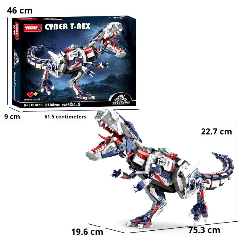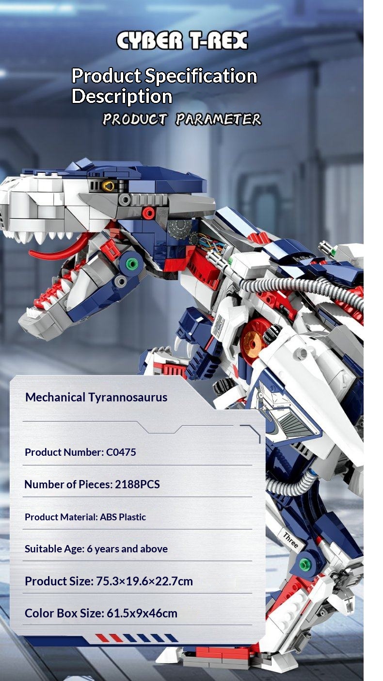 Colors: Mechanical Tyrannosaurus Rex [2188 pieces] C0475, Spiky Pachycephalosaurus [2025 pieces] C0473, Giganotosaurus [2111 pieces] C0474