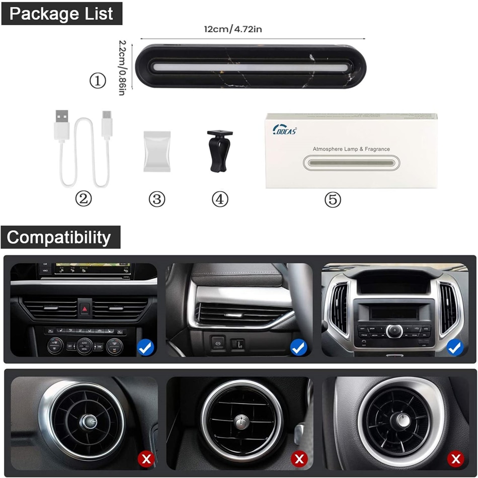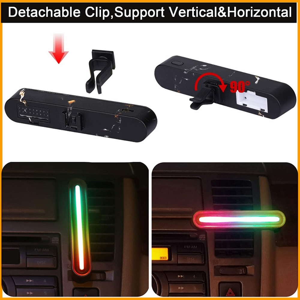 Unique 2 in 1 design: Compact car diffuser vent clip (air freshener & atmosphere lamp) made of high-quality ABS material, suitable for most cars, not block air outlet.