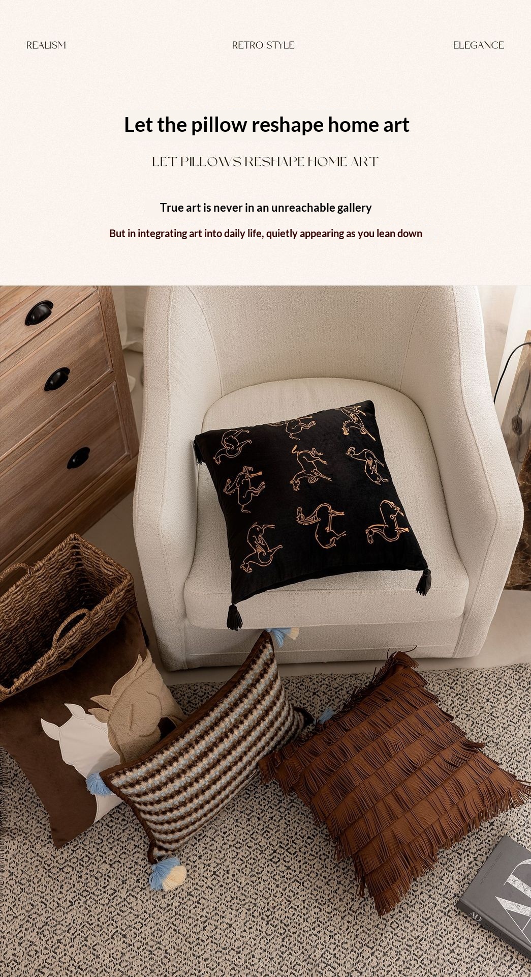 Colors: Qiji A – Pillow, Tianlu B – Pillow, Brown Shadow Dream B – Pillow, Qiji B – Lumbar Pillow