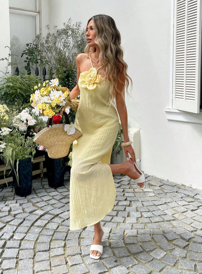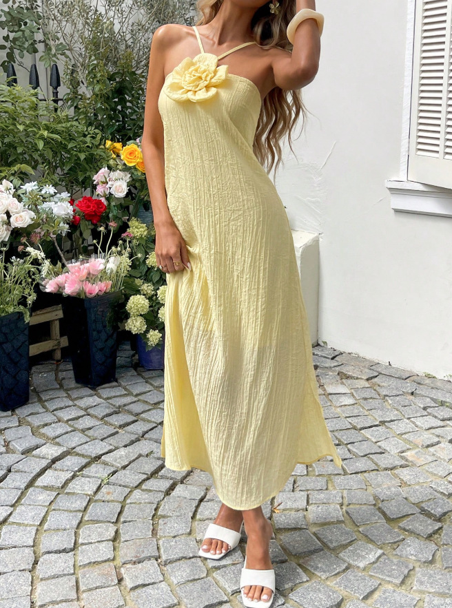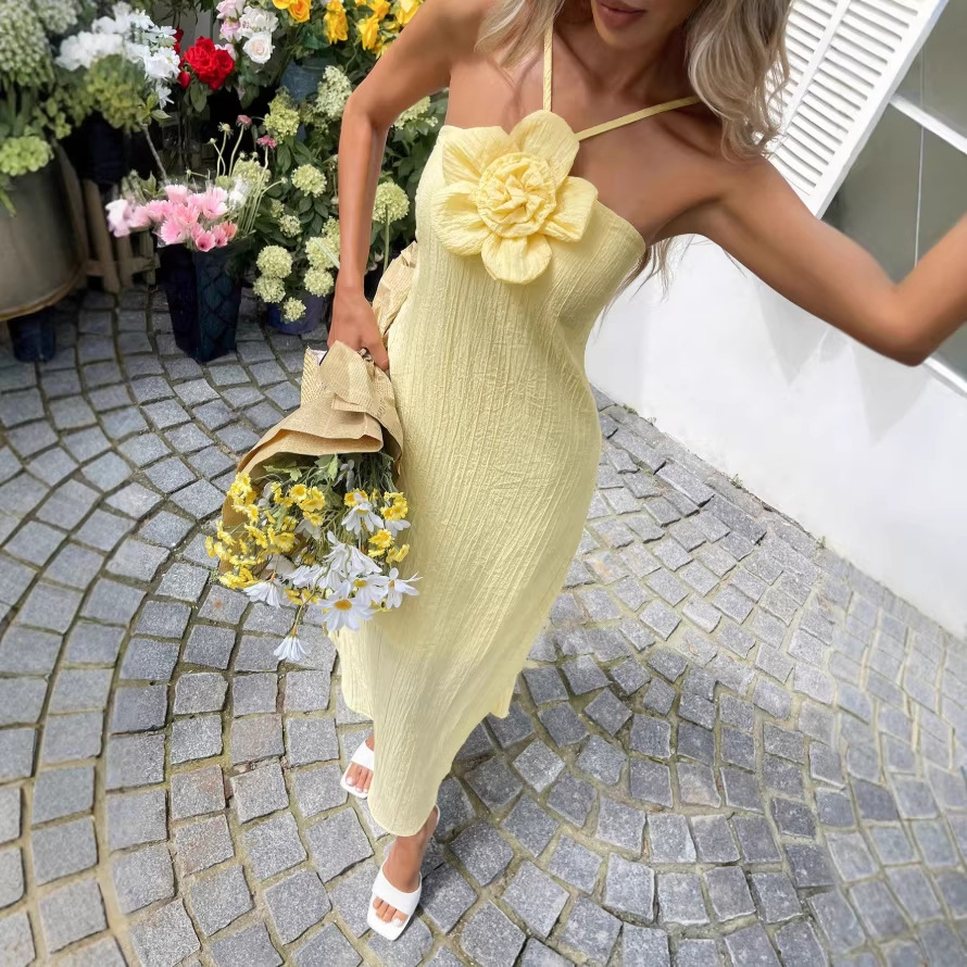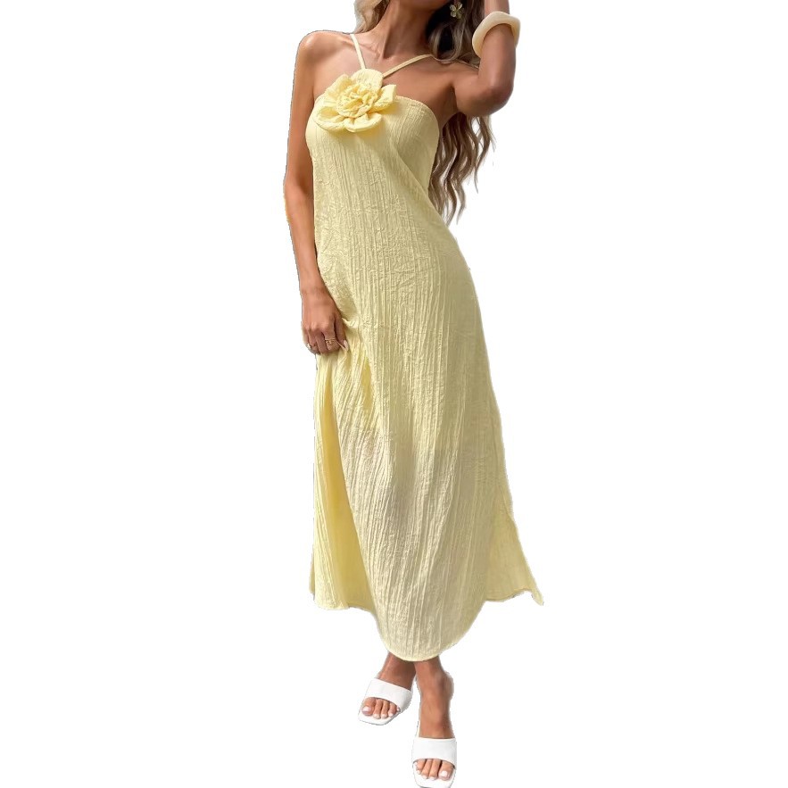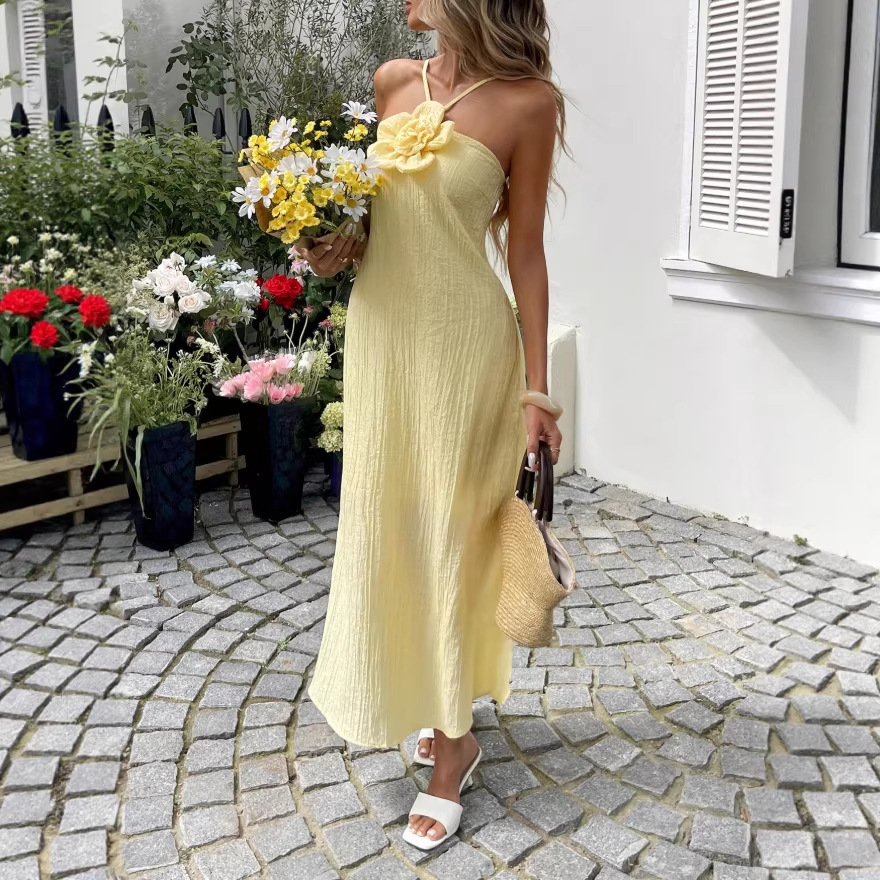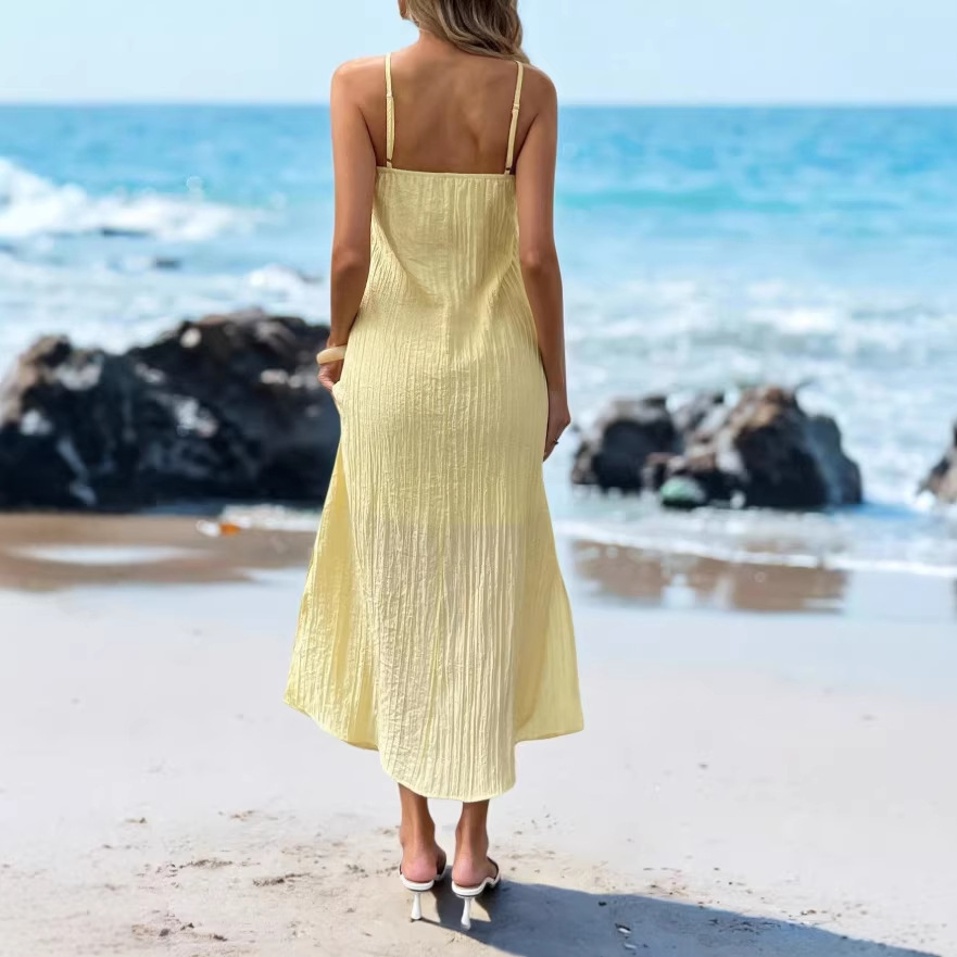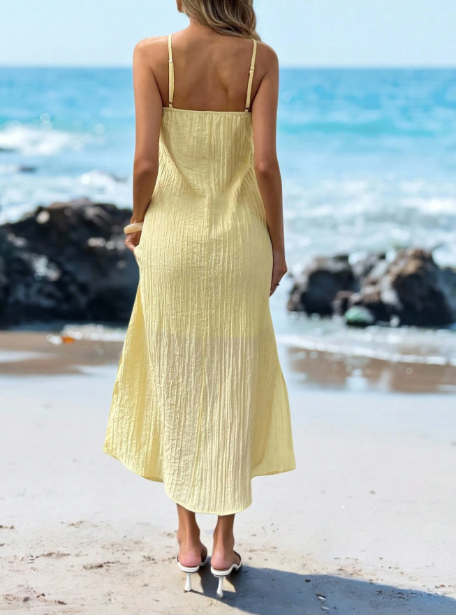 High-End Elegant Sheer Spaghetti-Strap Backless Solid-Colored Waist-Cinching Bodycon Skirt