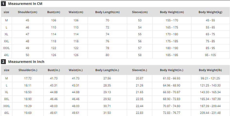 Size: M L XL XXL XXXL 4XL