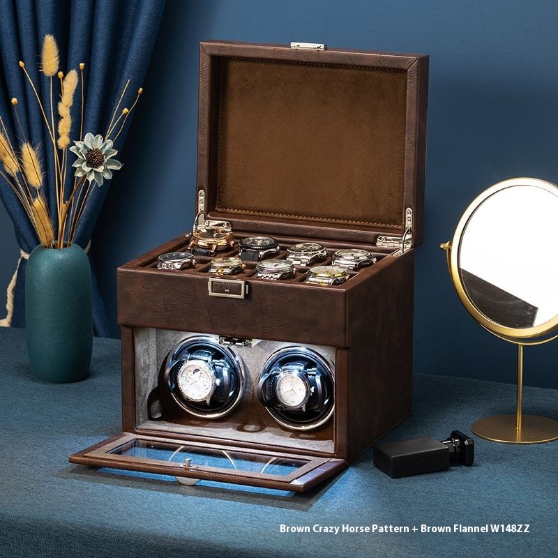 Color: black leather gray velvet (shaking watch light upgrade version), carbon fiber leather black leather (shaking watch light upgrade version), Brown Crazy Horse grain brown velvet (shaking watch light upgrade version),2 shaking watch upper jewelry storage (black outside and gray inside),2 shaking watch-bit upper jewelry storage (black outside and red inside)