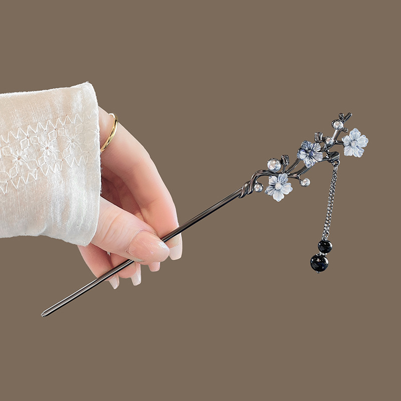 High-end New Chinese Flowers Tassel Hairpin Special-interest Design Retro