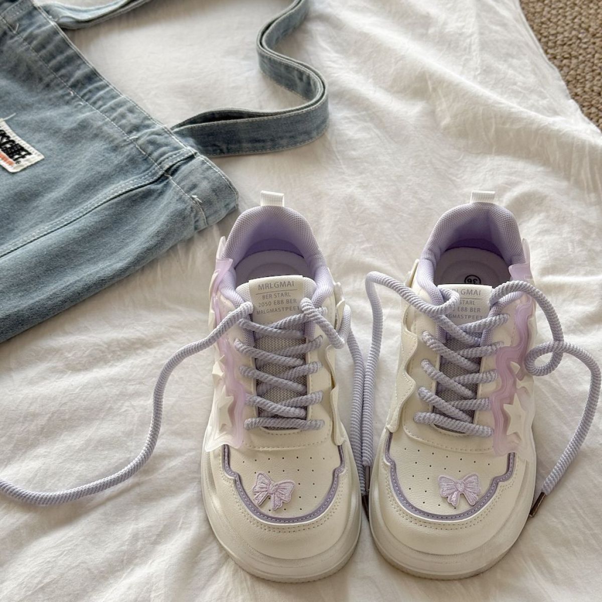 Color: beige purple with cute butterflies
