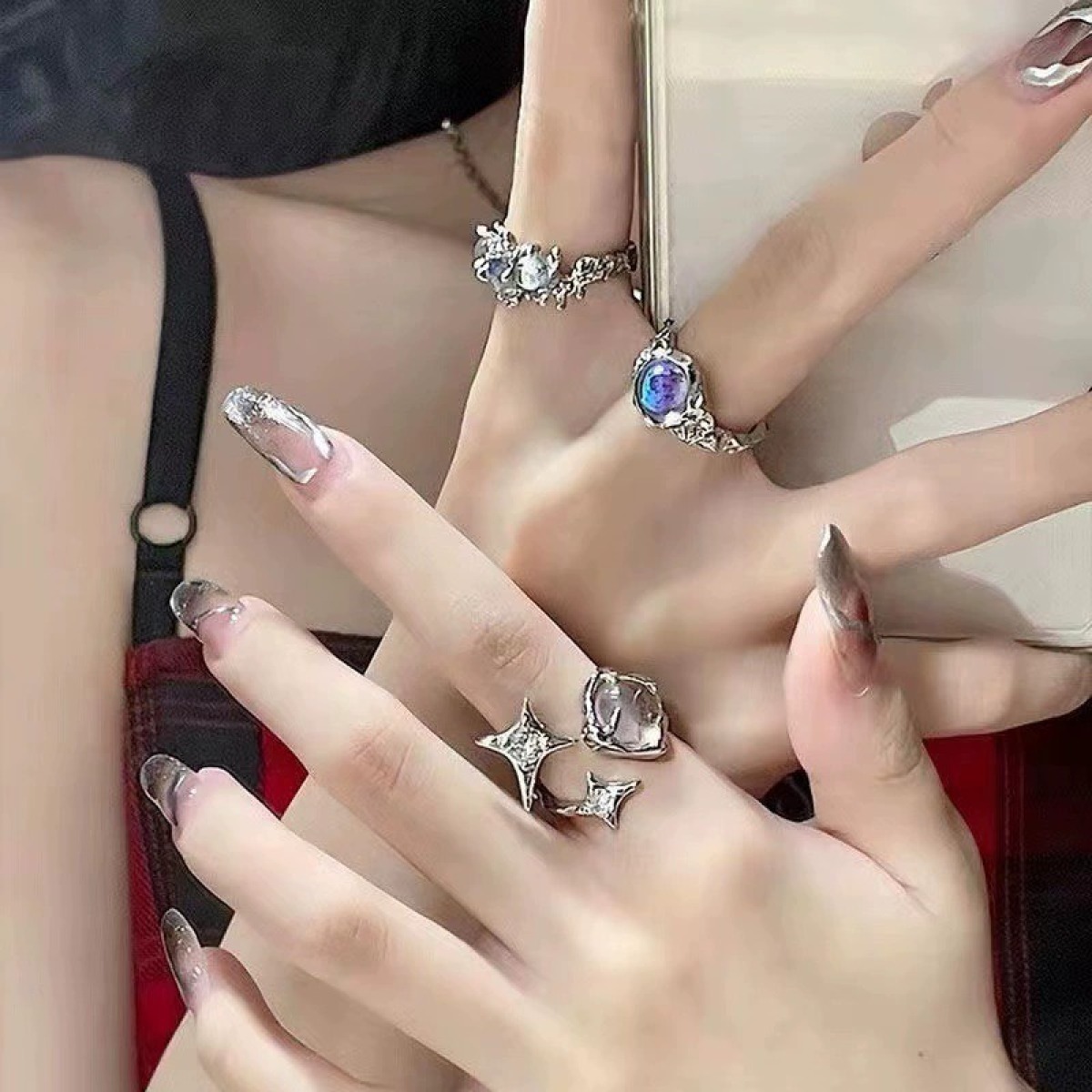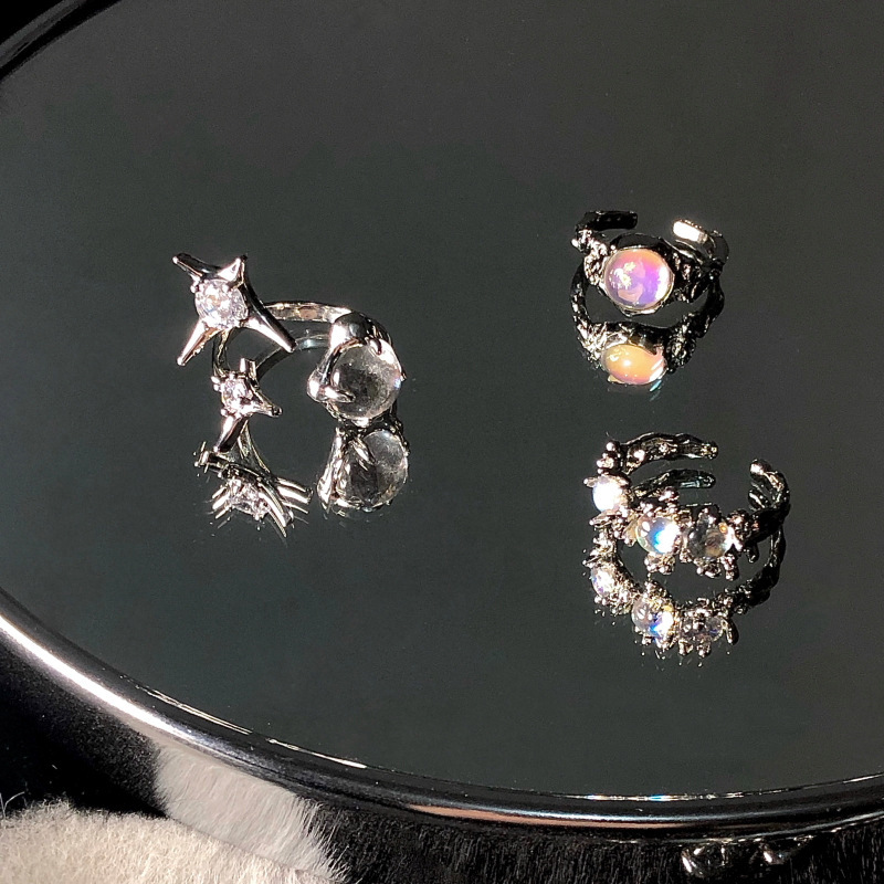 High-End Opal & Moonstone Ring For Women, Luxury Niche Design, Lava Zircon Adjustable Index Finger Ring