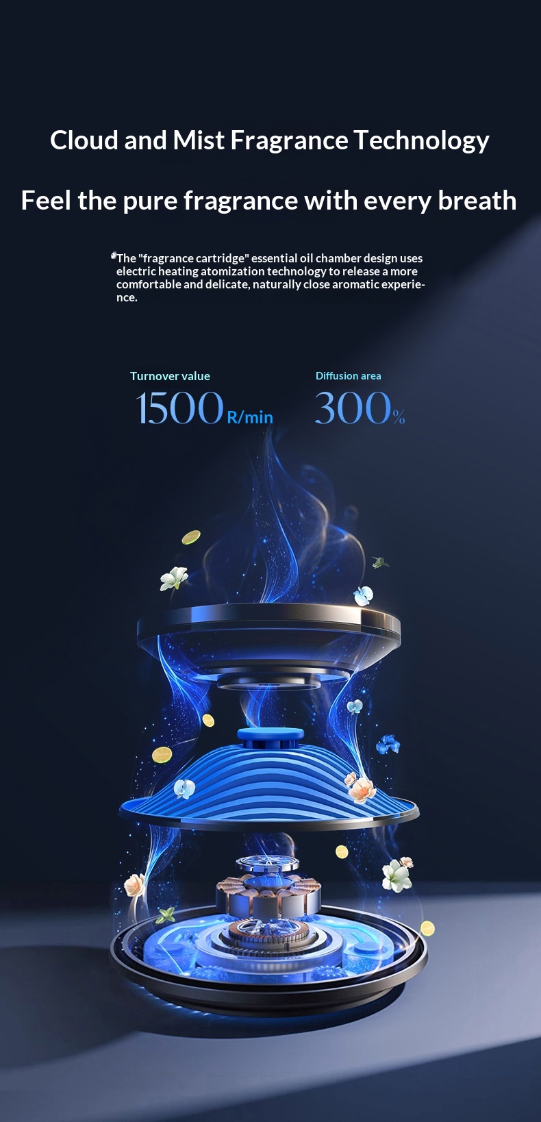 Colors: Snowy Mist Forest [Auto On/Off + All-Around Instant Fragrance + Five-Color Ambient Lighting], Gardenia White Tea [Auto On/Off + All-Around Instant Fragrance + Five-Color Ambient Lighting], Passionate Citrus Grapefruit [Auto On/Off + All-Around Instant Fragrance + Five-Color Ambient Lighting], Serene Post-Rain [Auto On/Off + All-Around Instant Fragrance + Five-Color Ambient Lighting], Azure Ocean [Auto On/Off + All-Around Instant Fragrance + Five-Color Ambient Lighting]