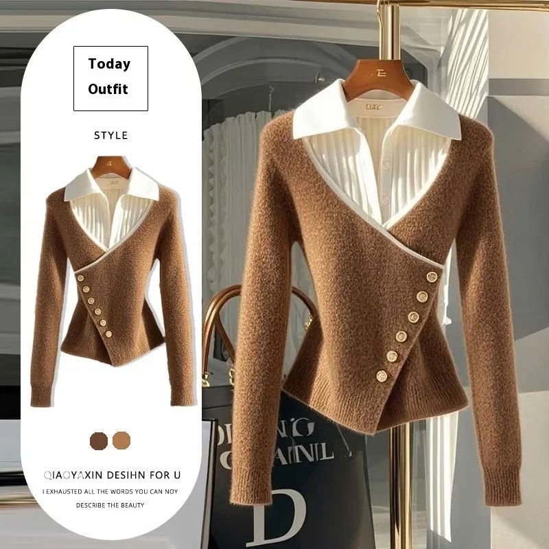 Color: khaki fake two-piece top