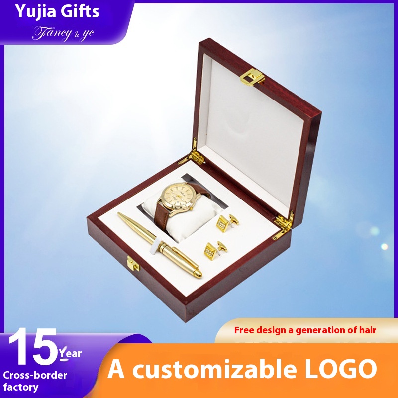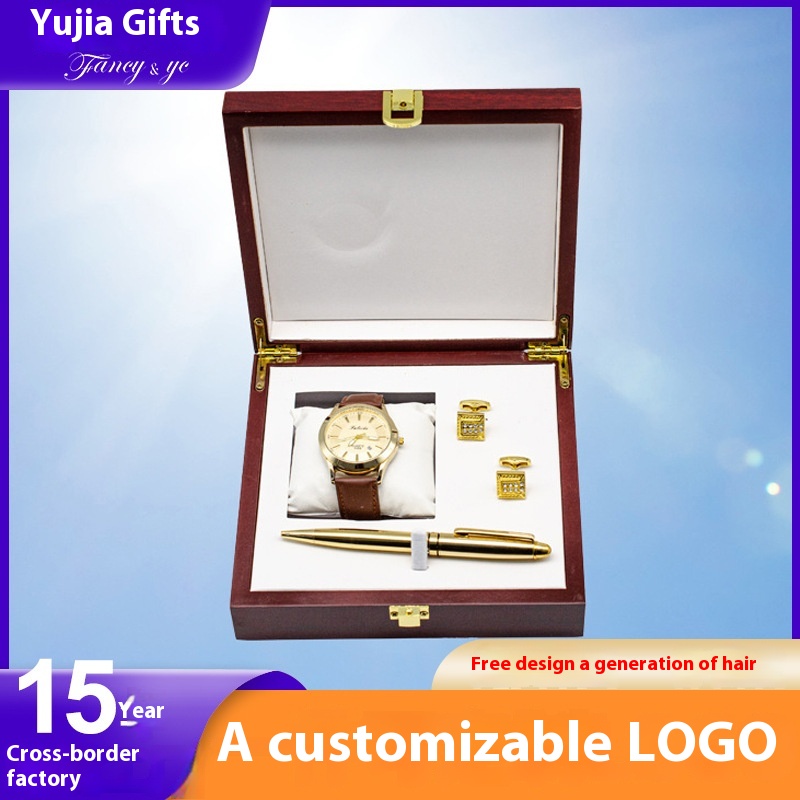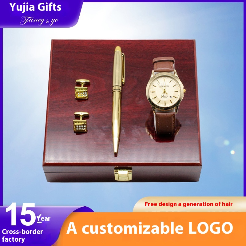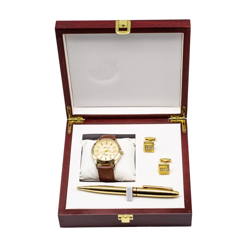 Color: 4 piece set (watch pen cufflinks wooden present box)