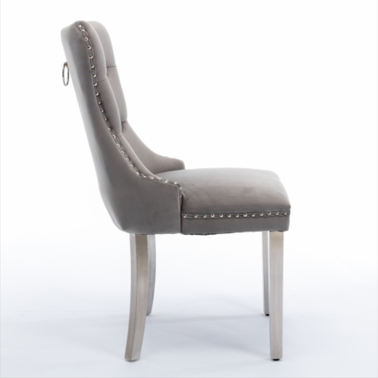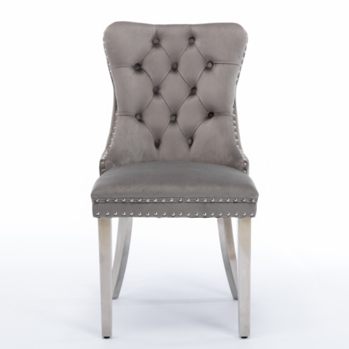 Product Name:A&A Furniture,Nikki Collection Modern, High-end Tufted Solid Wood Contemporary Velvet Upholstered Dining Chair with Chrome Stainless Steel Plating Legs,Nailhead Trim,Set of 2,Gray and Chrome, SW1701GY
