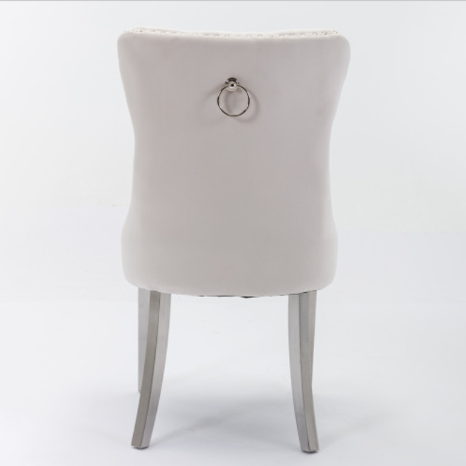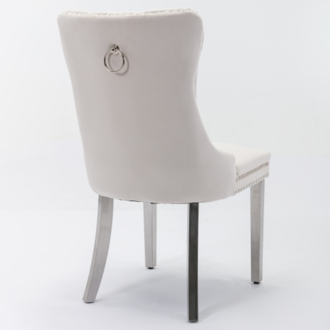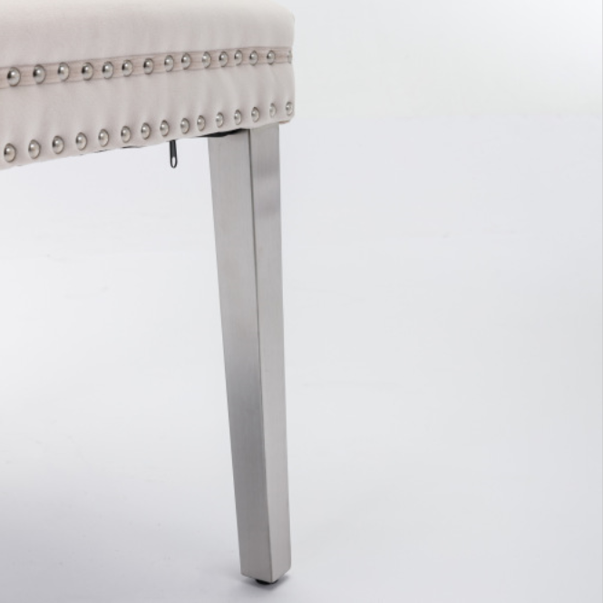 Product Name:Nikki Collection Modern, High-end Tufted Solid Wood Contemporary Velvet Upholstered Dining Chair with Chrome Stainless Steel Plating Legs,Nailhead Trim,Set of 2,Beige and Chrome, SW1701BG