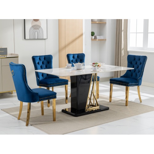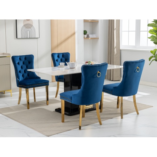 Product Name:A&A Furniture,Nikki Collection Modern, High-end Tufted Solid Wood Contemporary Velvet Upholstered Dining Chair with Golden Stainless Steel Plating Legs,Nailhead Trim,Set of 2,Blue and Gold, SW1601BL