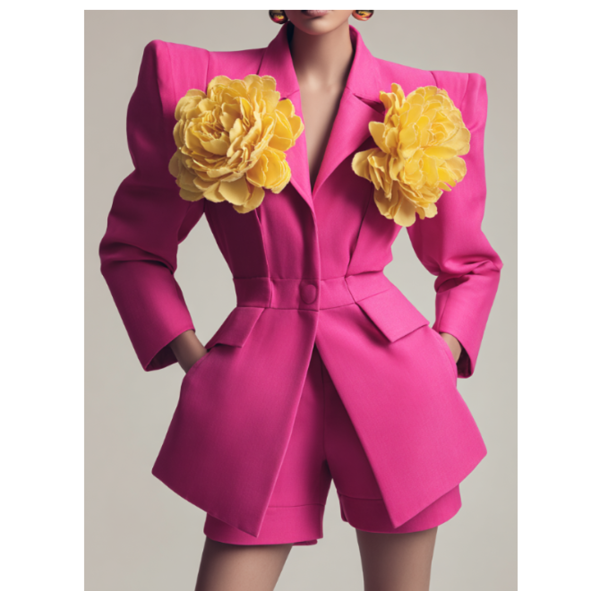 High-Fashion 3D Floral Structured Blazer & Shorts Set