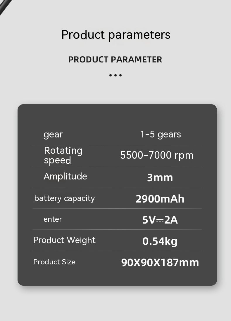 Functions: Hot compress, mini-portable, multi-gear adjustment, intelligent power off, low noise mute, multi-gear frequency conversion