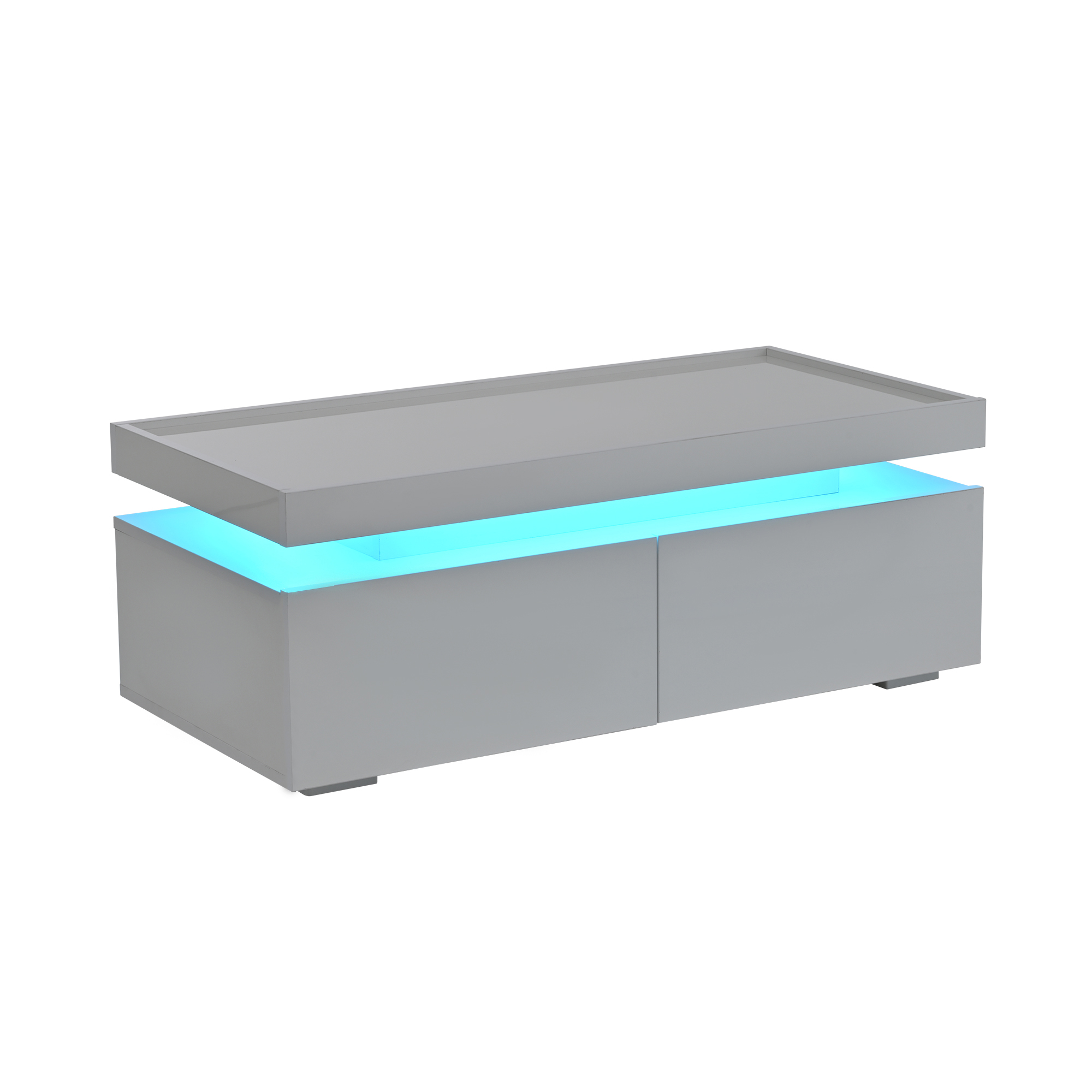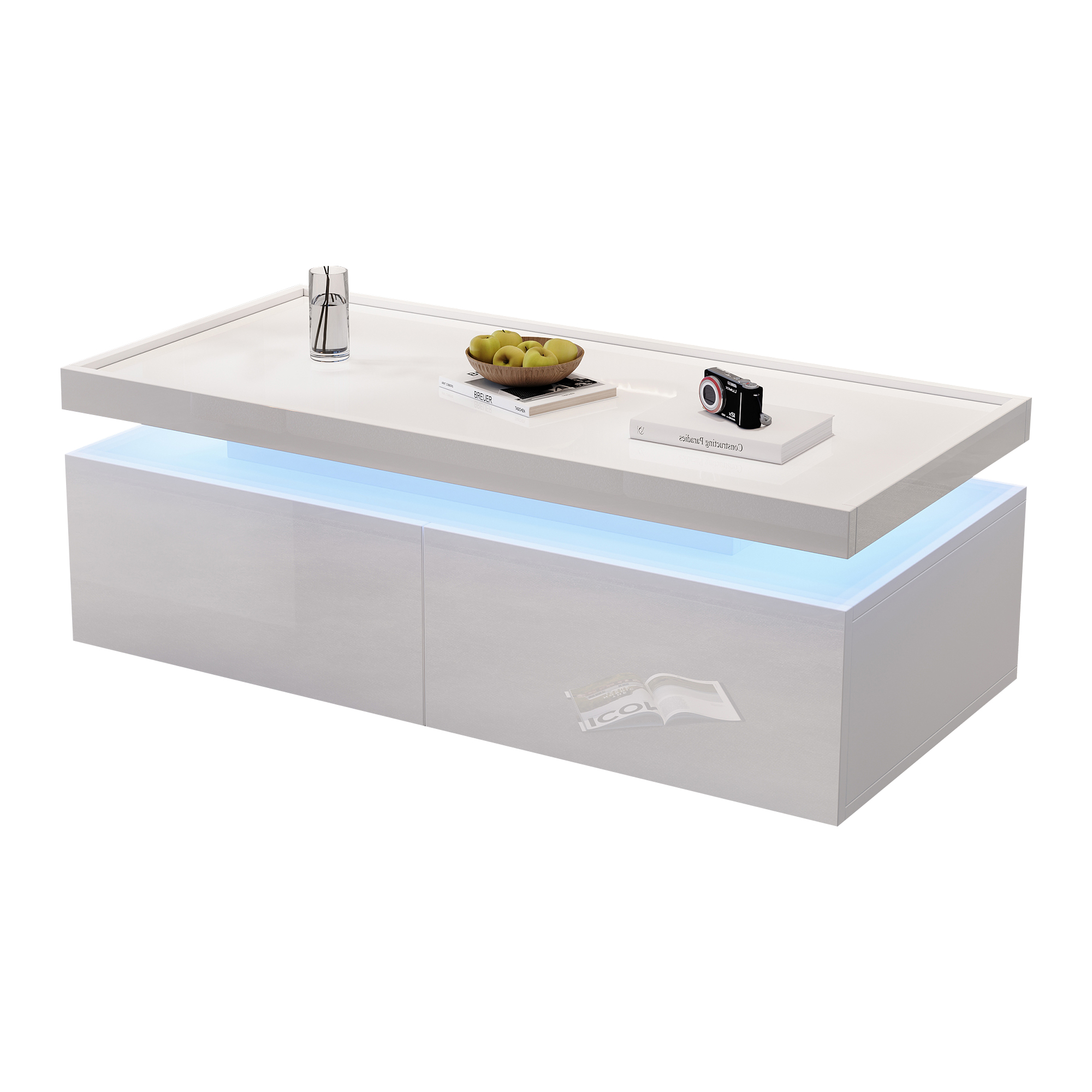 Product Name:High-gloss Coffee Table with 2 drawers, LED lights, Modern Centre Table, Sofa Side Table, Tea Table for Living Room, Office, 95 x 45 x 35cm, White