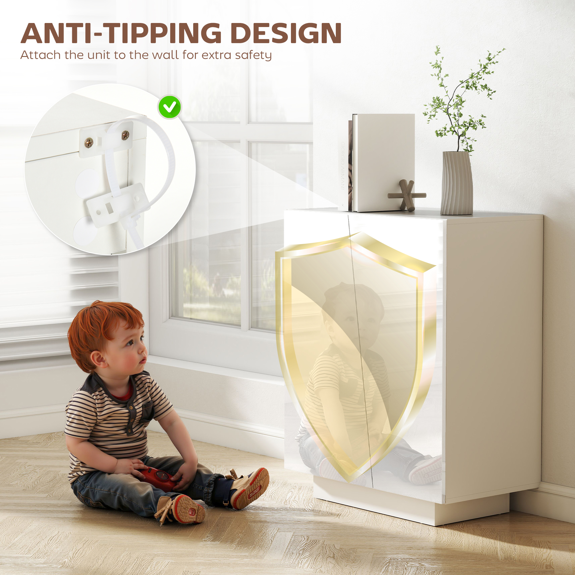 Go glossy for this season's storage - do it with this freestanding cabinet. The modern finish is complemented with the diagonally-cut doors, which add another depth of interest - a contemporary design suitable for all over the home and office. Inside, it features three shelves - all are adjustable to three different positions for a customisable storage area. Complete with anti-tipping straps to safely attach to a wall.
