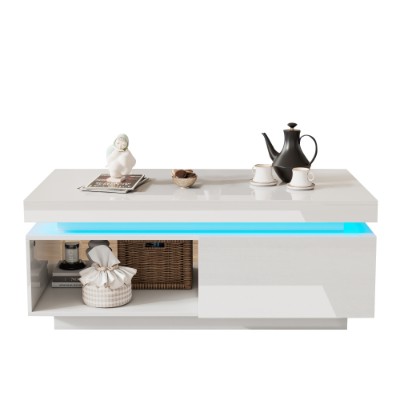 • High Gloss & LED lights: Simple High Glossy design with 16 colors LED lights, add extra elegance and modernity to your living room, simple structure and stylish texture better decorate your living room/bedroom/office.(The highlights of this coffee table are limited to the top plate and drawer panel)