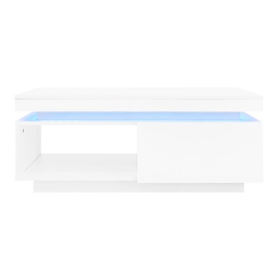 High Glossy LED Coffee Table With Drawer Storage, Wooden Centre Table With RGB Led Lights Rectangle Tea Table For Living Room Furniture, White Coffee Table With Open Display Shelf