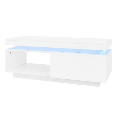 Product Name:High Glossy LED Coffee Table with Drawer Storage, Wooden Centre Table with RGB Led Lights Rectangle Tea Table for Living Room Furniture, white Coffee Table with Open Display Shelf
