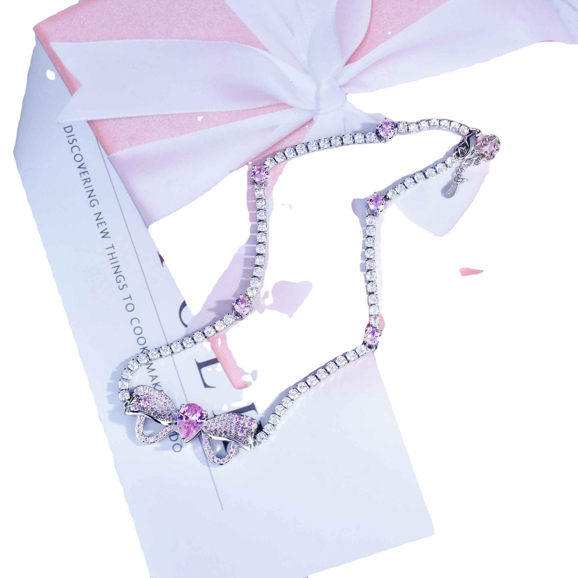 High-grade Affordable Luxury Fashion Full Diamond Bow Necklace Necklace Bracelet Ear Studs Suit