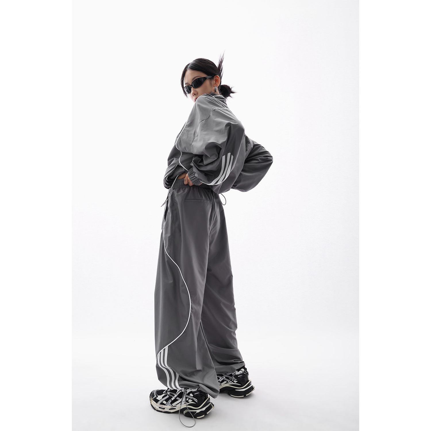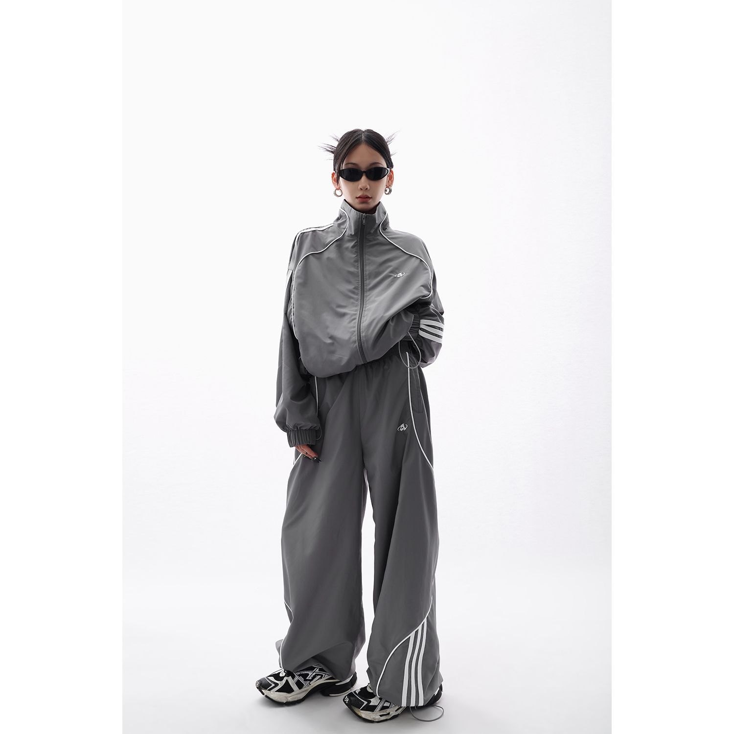 Color: cement gray pants, cement gray coat, cement gray two-piece set