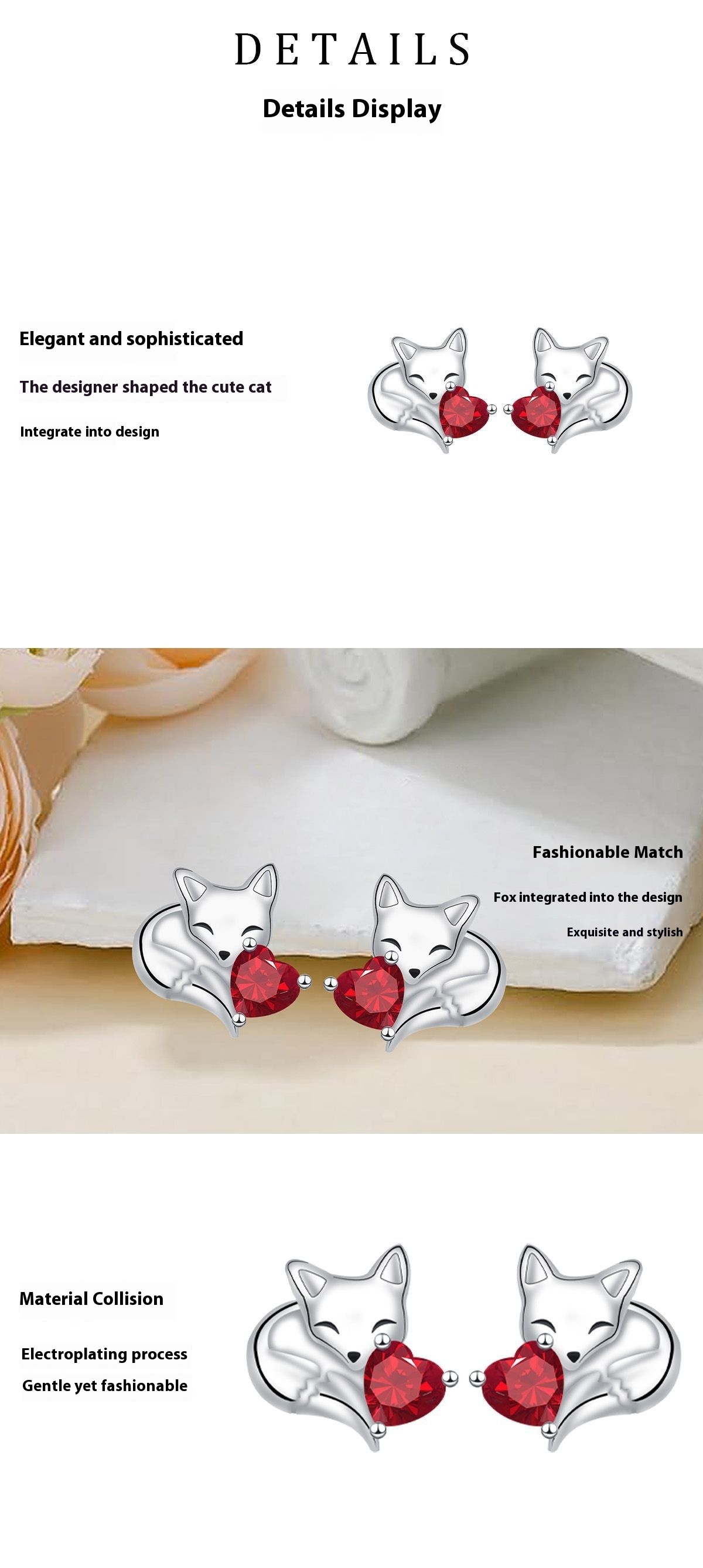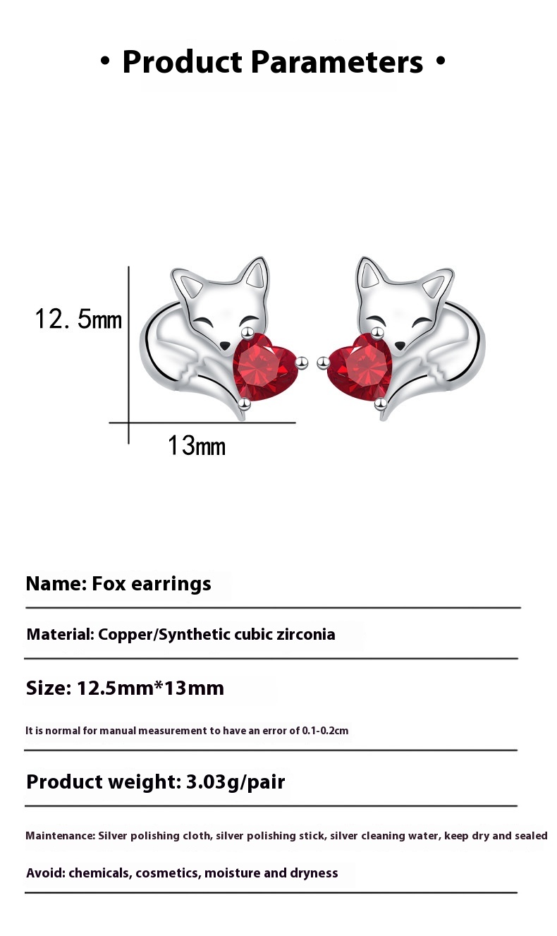 High-grade Fox Stud Earrings Elegant Style Personalized Design Fashion Sweet