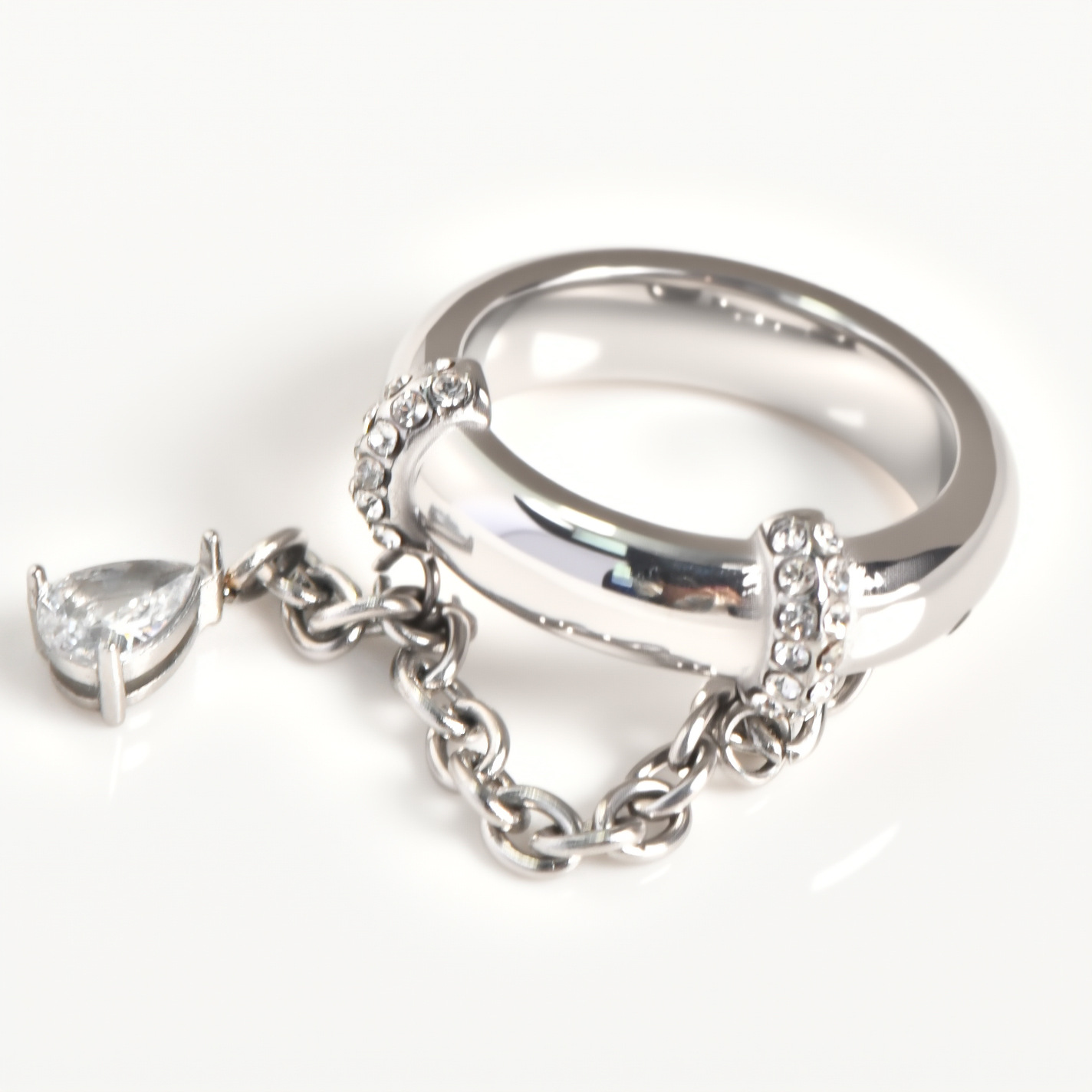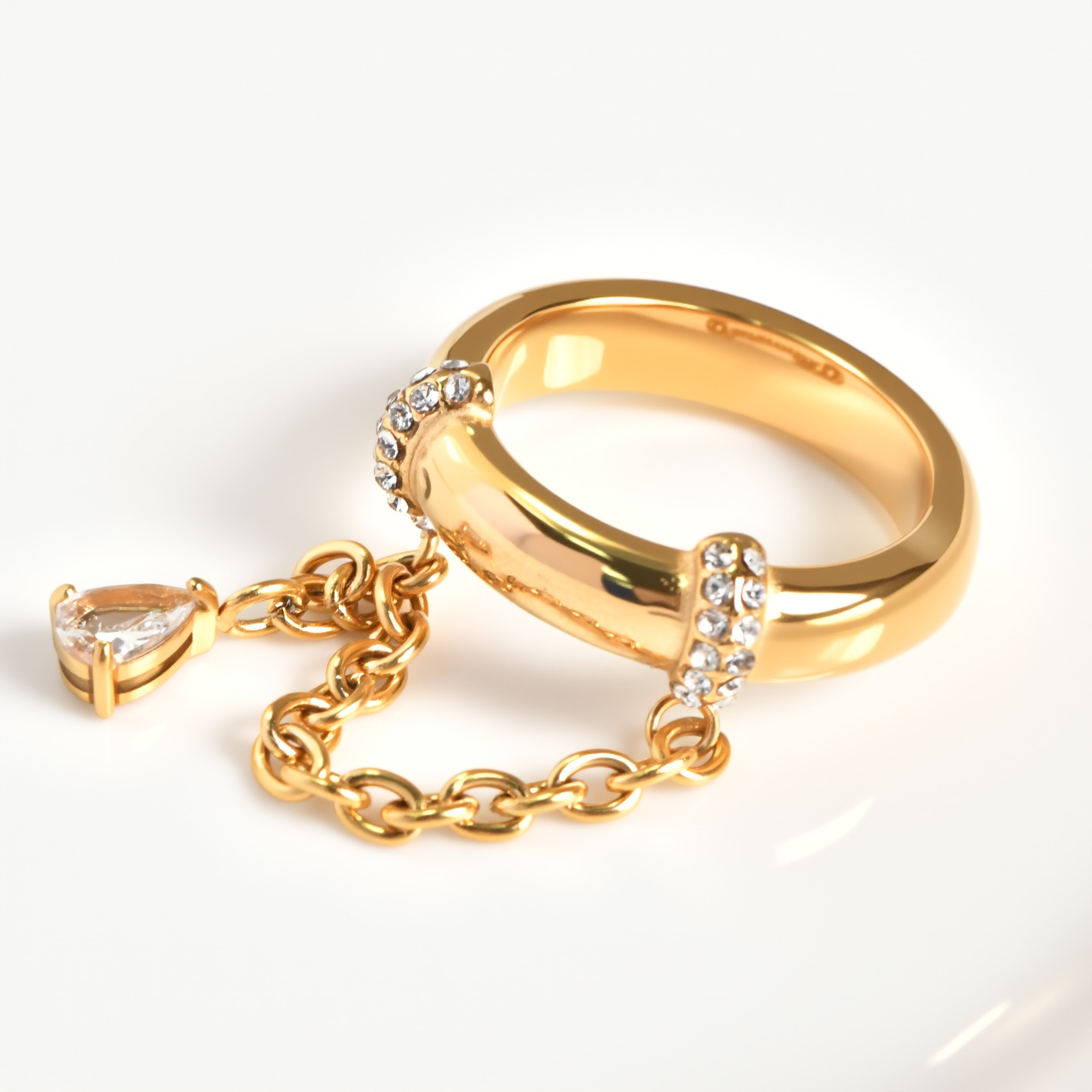 High-grade Gold Rhinestone-encrusted Chain Ring