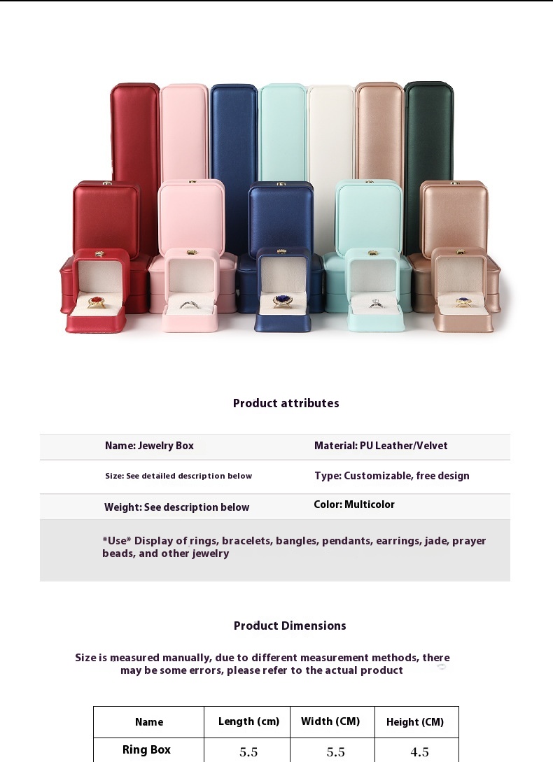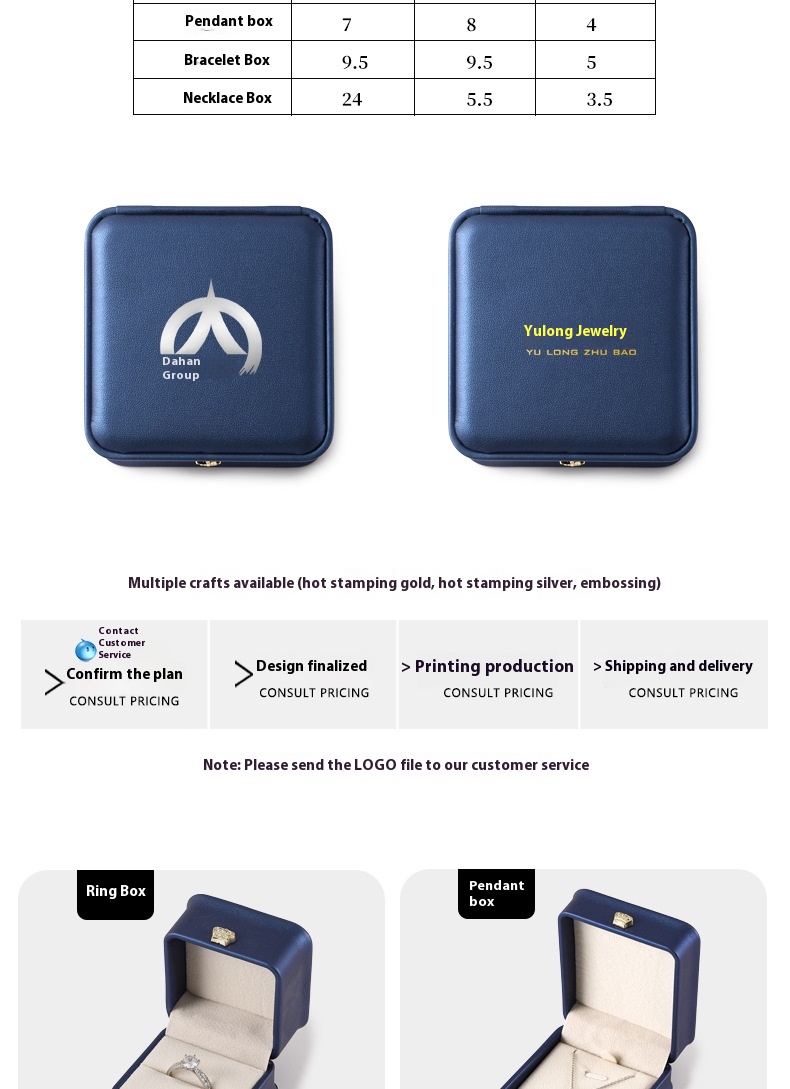Specifications: ring box, pendant box, bracelet box, necklace box