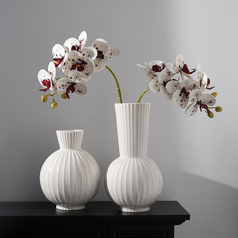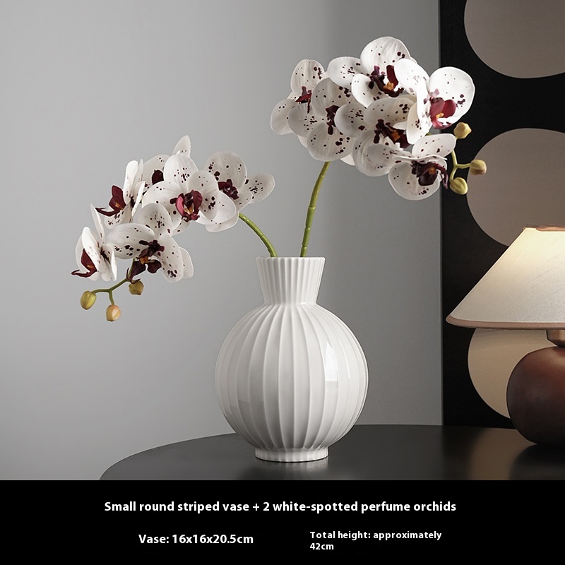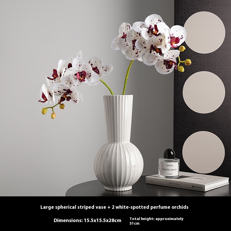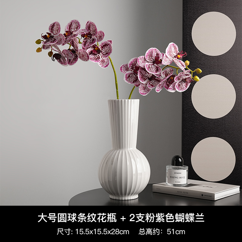 Style 6: ball striped vase large 2 pink purple Phalaenopsis.
