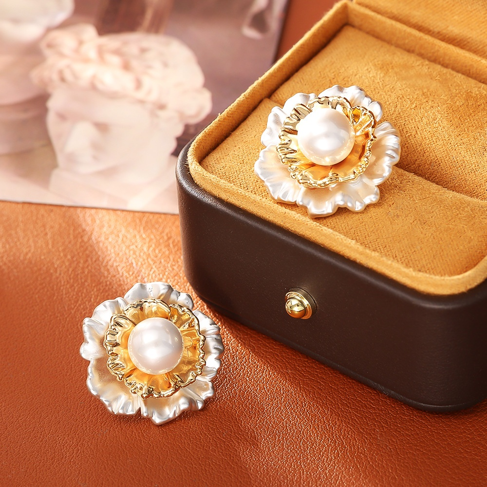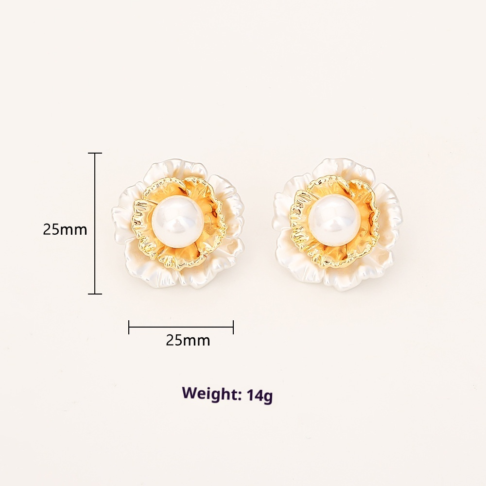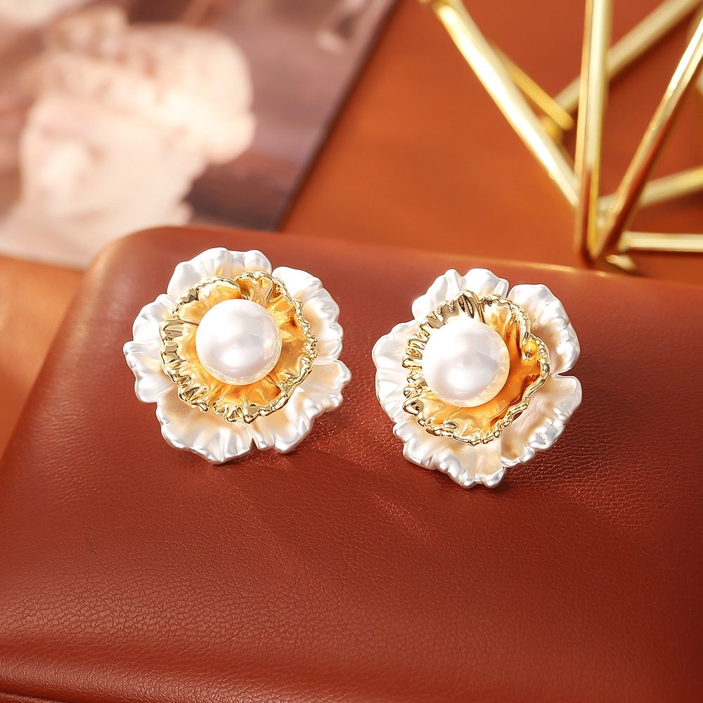 High-grade Pleated Flower Pearl Stud Earrings Fashionable Elegant Light Luxury