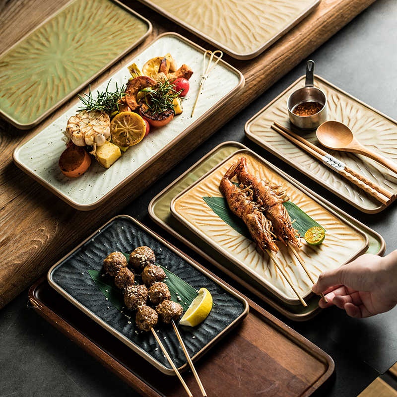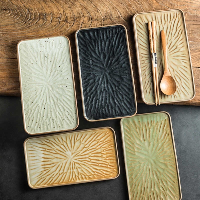 Product information:Shape: rectangle Material: Ceramic Tableware craft: underglaze Disk Type: Dish Applicable object: general
