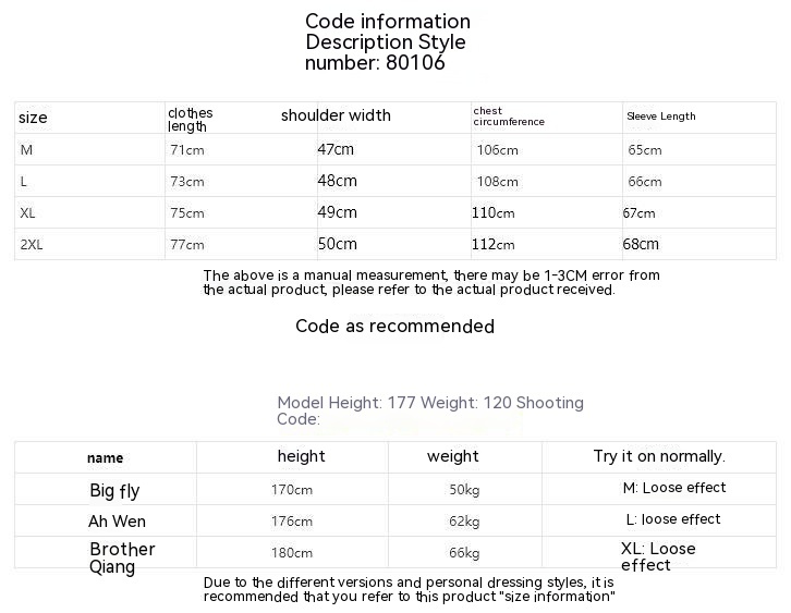 1. Asian sizes are 1 to 2 sizes smaller than European and American people. Choose the larger size if your size between two sizes. Please allow 2-3cm differences due to manual measurement. 2. Please check the size chart carefully before you buy the item, if you don't know how to choose size, please contact our customer service. 3.As you know, the different computers display colors differently, the color of the actual item may vary slightly from the following images.